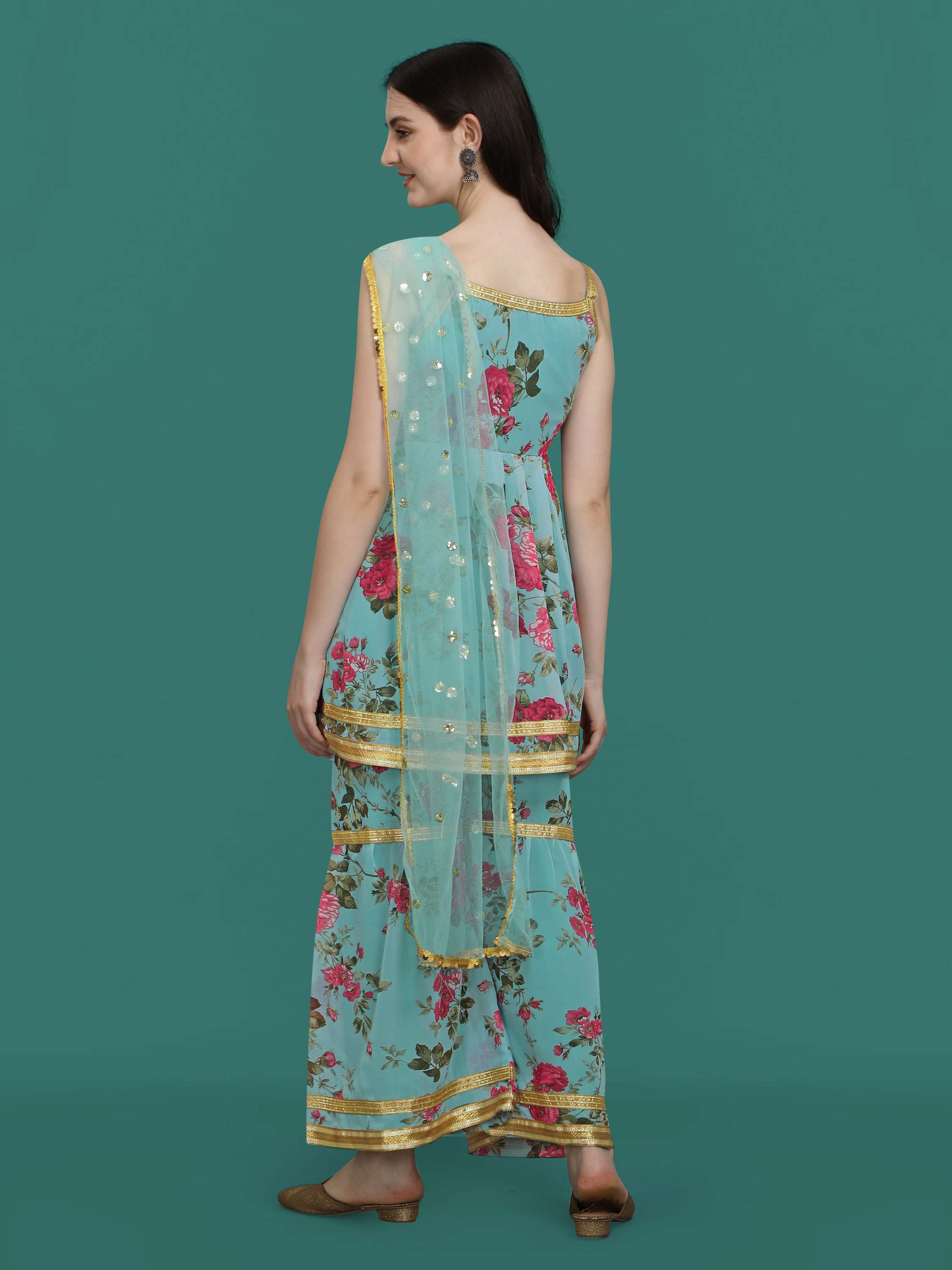 Looking These Beautiful Party Wear Readymade Sharara Suits With Dupatta.These Suit is Fabricated On Top And Bottom Are Georgette And Net Dupatta .Its Beautified With Designer Printed, Lace Work.