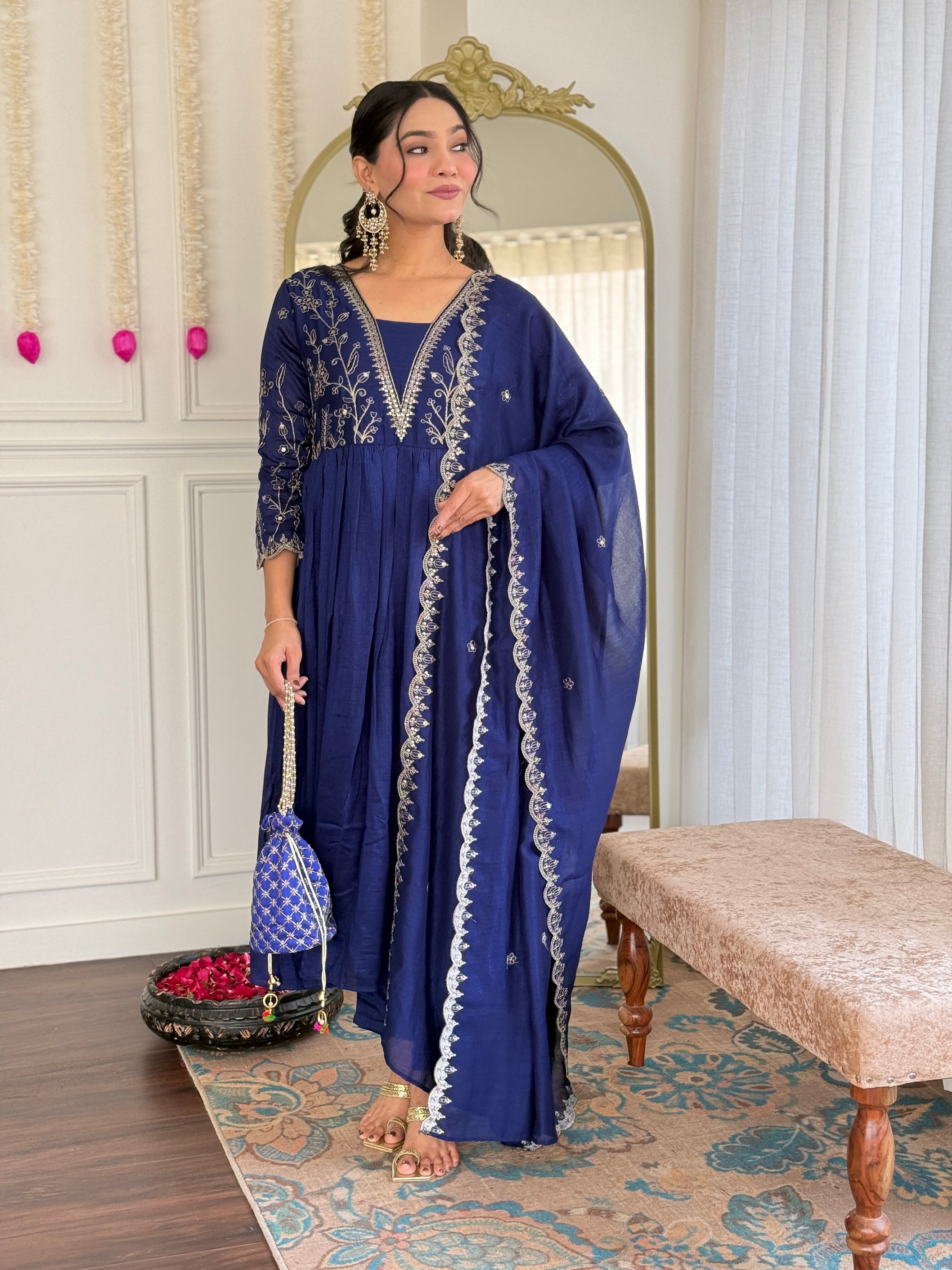 Blue Color Smart And Festive Readymade Vichitra Silk Fabic Kurta Set