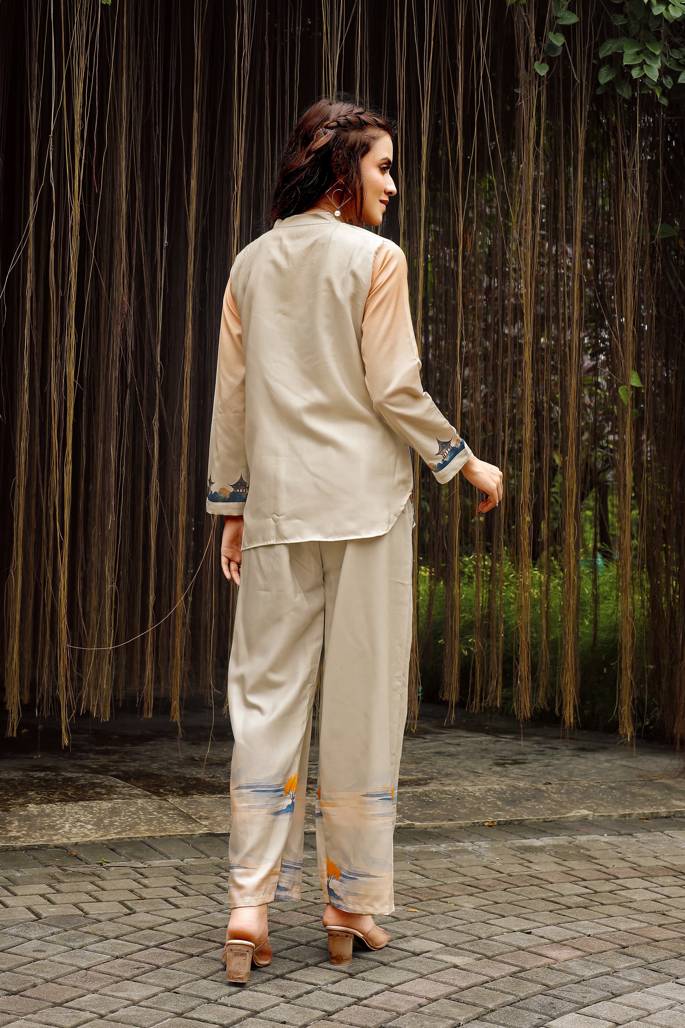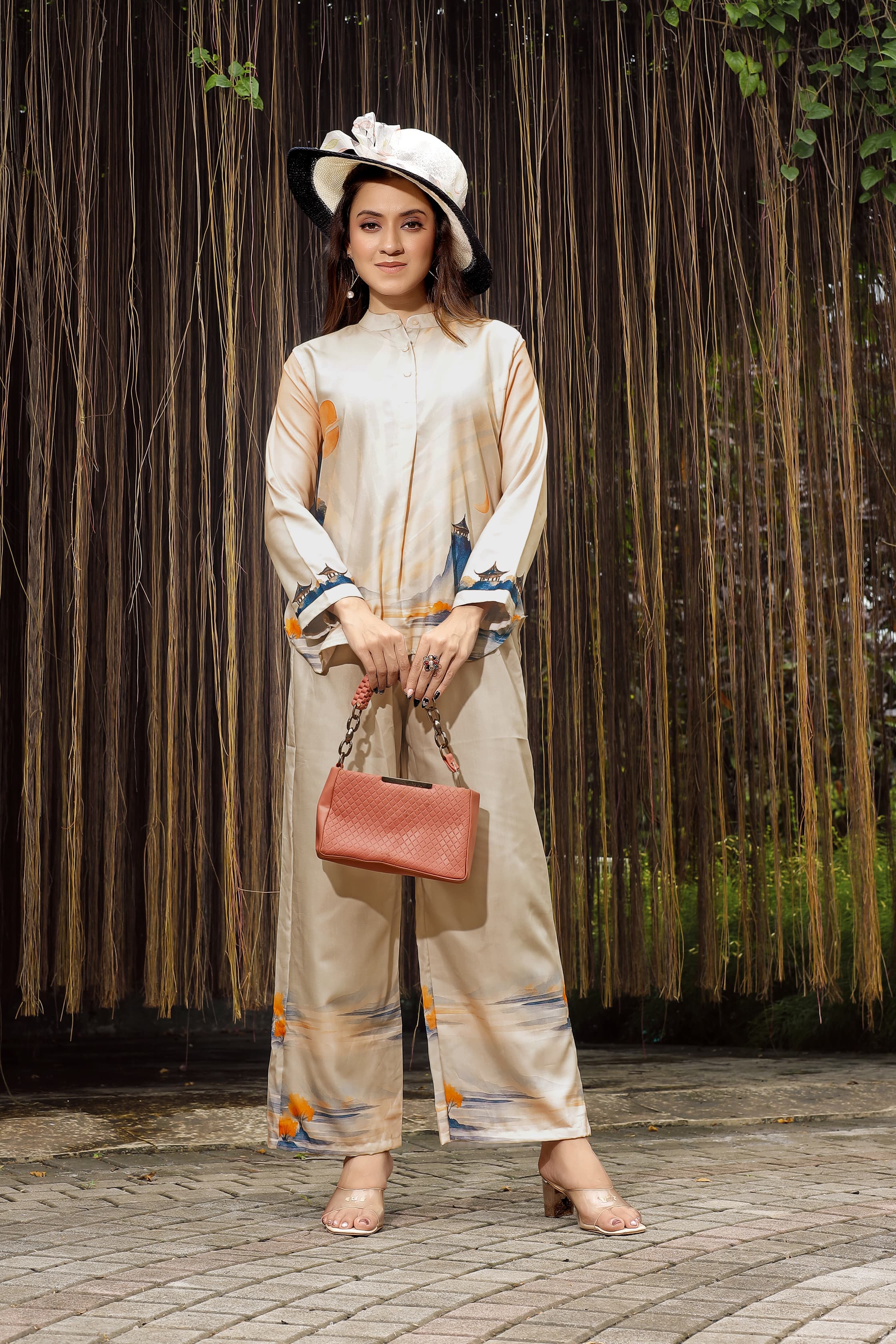 Cream Color Rayon Fabric Designer Digital Printed Readymade Co ord Set