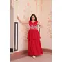 Designer Ethnic Gown Set Faux Blooming Fabric Beads Embroidered Work for Women – Red Color