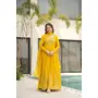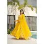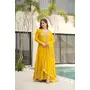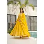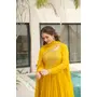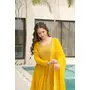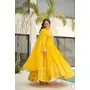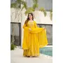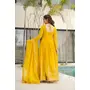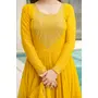 Designer Ethnic Gown Set with Dupatta Faux Blooming Fabric Embroidery Zari Sequins-Work for Women – Yellow Color