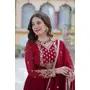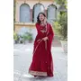 GOWN :- FABRICS WORK :- Faux Blooming Georgette with Rich Sequins Embroidered work, SIZE :- M(38), L(40), XL(42), XXL(44), LENGTH :- 56 INCH, FLAIR :- 3.5 MTR, LINING :- Cotton (Full Inner Top To Bottom), SLEEVES :- Full Sleeve, NECK TYPE :- Fancy V Neck as Shown in Image, STITCHING TYPE :- Stitched with Canvas Patta, DUPATTA :- FABRIC WORK :- Faux Blooming Georgette With Attractive lace and embroidered work, LENGTH :- 2.3 MTR.