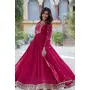 GOWN :- FABRICS WORK :- Faux Blooming Georgette with Rich Sequins Embroidered work, SIZE :- M(38), L(40), XL(42), XXL(44), LENGTH :- 56 INCH, FLAIR :- 3.5 MTR, LINING :- Cotton (Full Inner Top To Bottom), SLEEVES :- Full Sleeve, NECK TYPE :- Fancy V Neck as Shown in Image, STITCHING TYPE :- Stitched with Canvas Patta, DUPATTA :- FABRIC WORK :- Faux Blooming Georgette With Attractive lace and embroidered work, LENGTH :- 2.3 MTR.