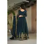 Designer Ethnic Gown Set with Dupatta Faux Blooming Georgette Fabric Zari Thread & Sequins Embroidery for Women – Green Color