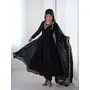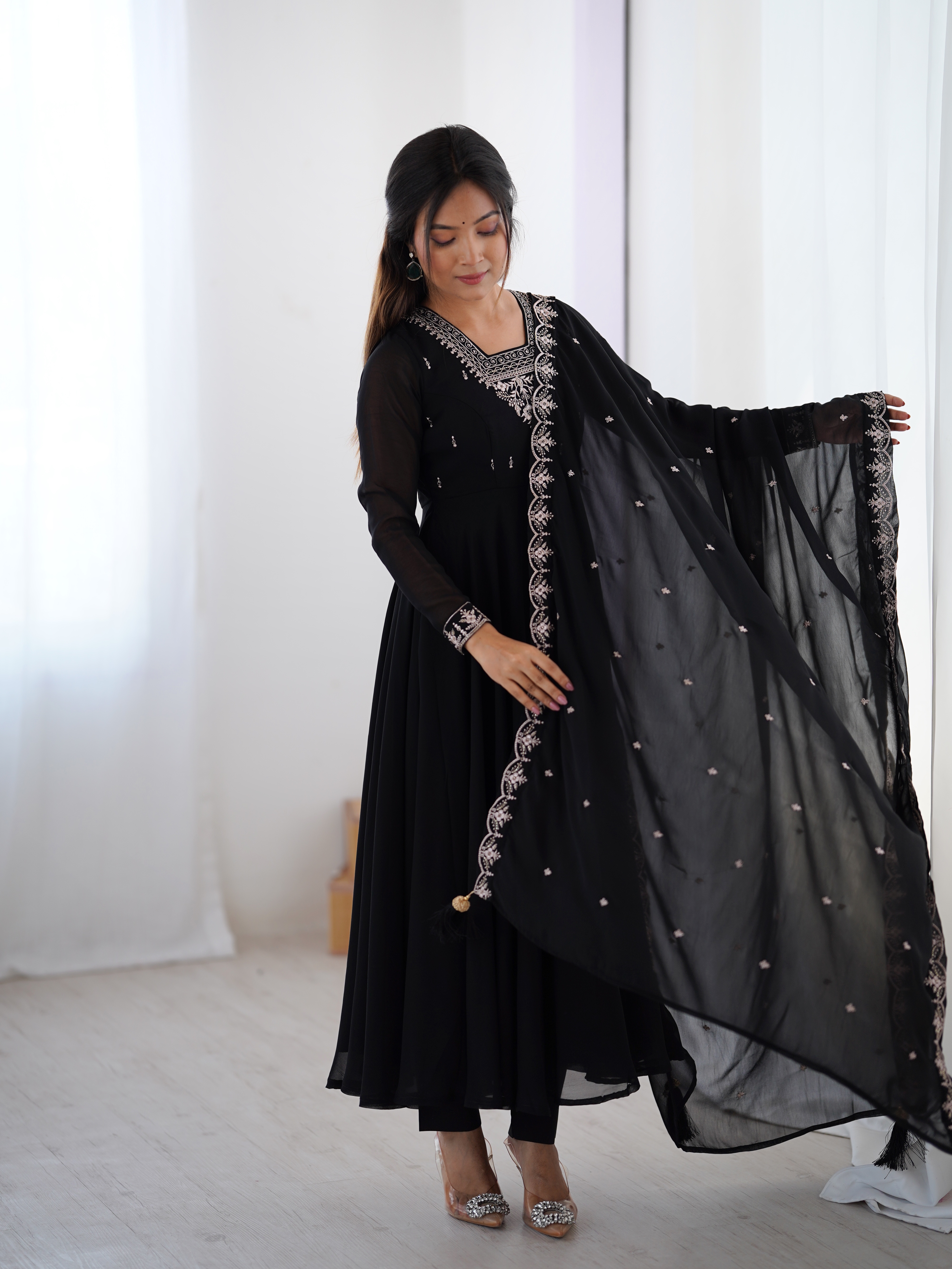 Designer Ethnic Gown Set with Dupatta Fox Georgette Fabric Fancy Embroidery Beads And Jari Work for Women – Black Color