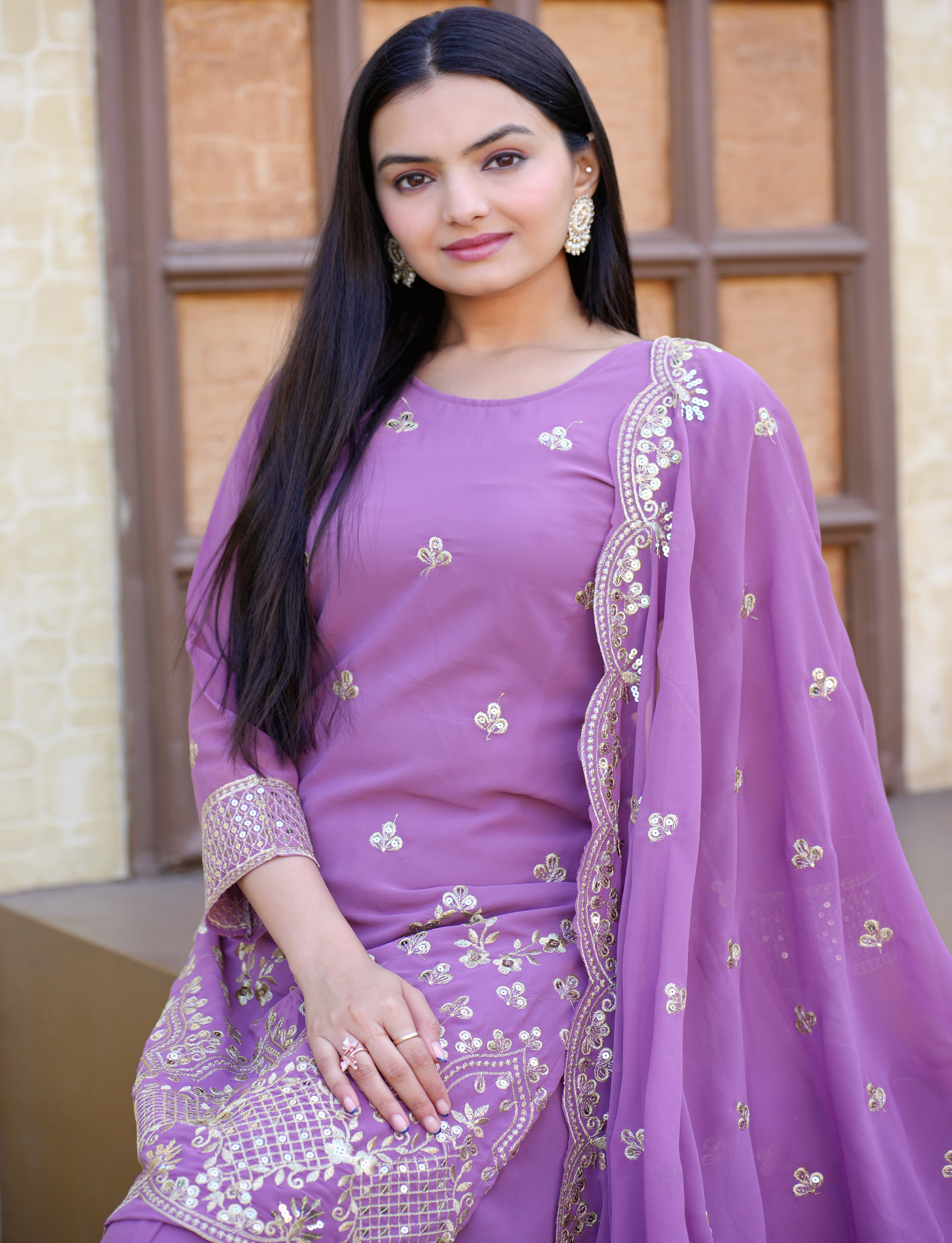 Designer Ethnic Gown Set with Dupatta Fox Georgette Fabric Sequence Embroidery Work for Women – Lavender Color