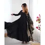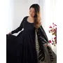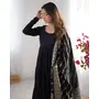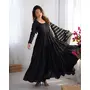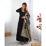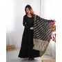 Designer Ethnic Gown Set with Dupatta Heavy Pure Romansilk Chanderi Fabric Fabric Yoke Lace Work for Women – Black Color