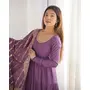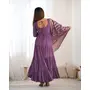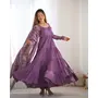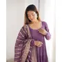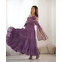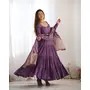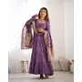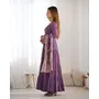 Designer Ethnic Gown Set with Dupatta Heavy Pure Romansilk Chanderi Fabric Fabric Yoke Lace Work for Women – Lavender Color