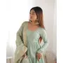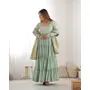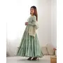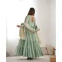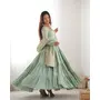 ANARKALI FABRIC: HEAVY PURE ROMANSILK CHANDERI FABRIC, YOKE LACE WORK, FULL CHURIDAR SLEEVES, PADDED, SIDE ZIPPER, FOUR LAYER GATHERING, GOWN FLAIR:9 mtr plus fully flair, ANARKALI INNER: PURE MICROSCRAPE FULL LINING, DUPPTA FABRIC: 36 inch CHANDERI BANARASI JACKQUARD DUPPATA FABRIC, ANARKALI LENGTH:54 inch approx, PENT FABRIC:PURE ROMANSILK CHANDERI FABRIC FREE SIZE FULLY STTICHED, SIZE :XS(34) S(36) M(38) L(40) XL(42) And XXL(44) Fully stitched ready to wear.