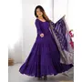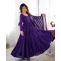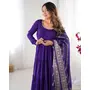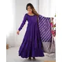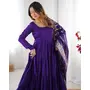 Designer Ethnic Gown Set with Dupatta Heavy Pure Romansilk Chanderi Fabric Fabric Yoke Lace Work for Women – Purple Color
