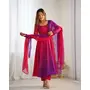 Designer Ethnic Gown Set with Dupatta Heavy Pure Soft Fox Georgette Fabric Colourfull Padding for Women – Dark Pink Color