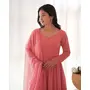 ANARKALI FABRIC: HEAVY PURE SOFT FOX GEORGETTE LUKHNOWI SEQUENCE WORK, , FULL LENGTH SLEEVES, PADDED, ZIPPER ATTACHED COMPLETE, GOWN FLAIR: 4 MTR APPORX FLAIR WITH KALI CUT ATTACHED COMPLETE WITH CANVAS PATTA, ANARKALI INNER: PURE MICRO COTTON WITH CANVAS PATTA ATTACHED, DUPATTA WORK: 2.2 MTR PURE SOFT FOX GEORGETTE DUPPTA RUFFLE STYLE, ANARKALI LENGTH:48 49 INCH APPORX, PENT:MICRO COTTON SILK FREE SIZE FULLY STTICHED, SIZE:S(36) M(38) L(40) XL(42) And XXL(44) Fully stitched ready to wear.