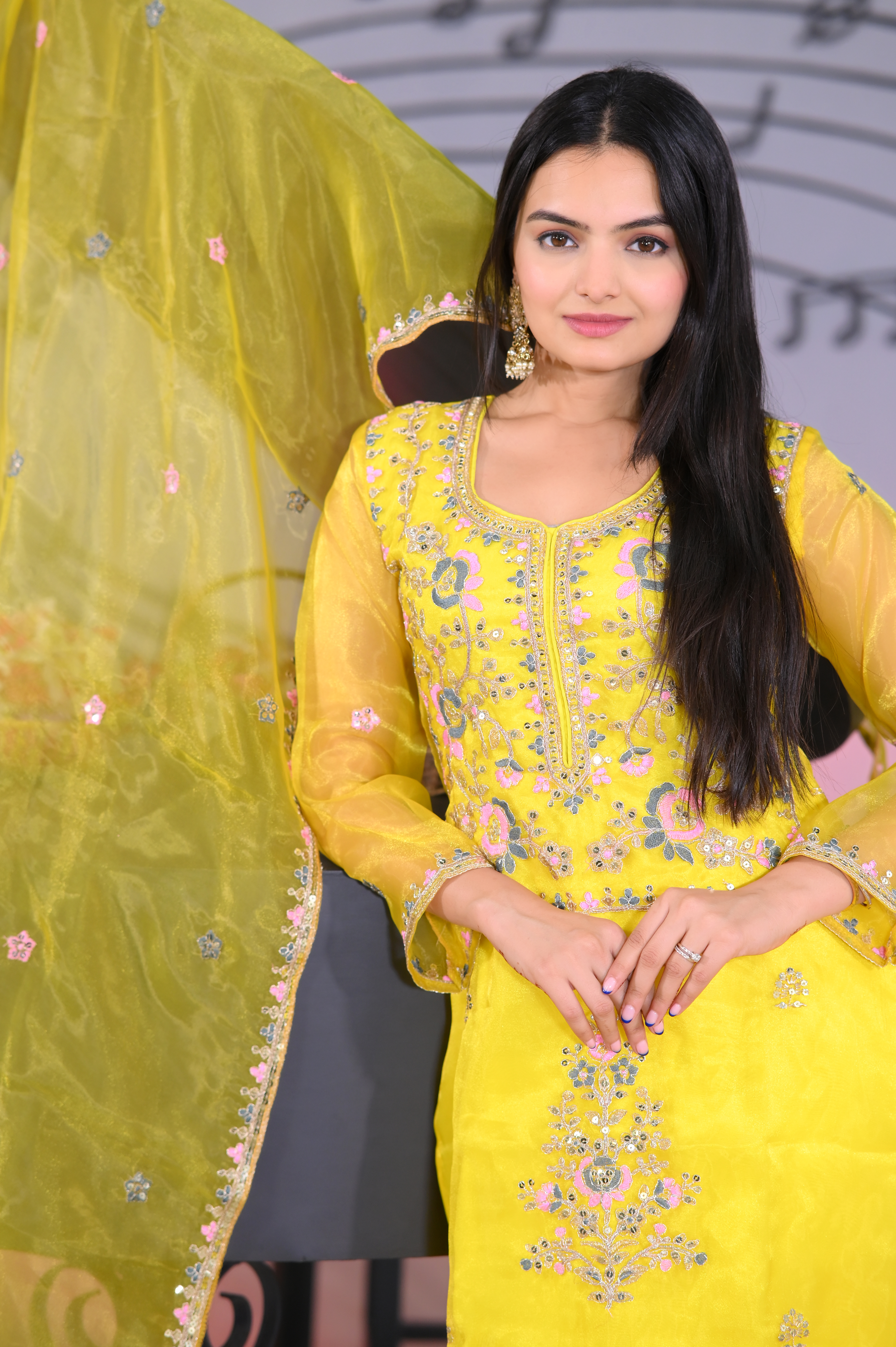 Top, Fabric : organza, Inner : Micro, Work : Coding Embroidery With 5 MM Sequence Work, Top length : 46 inch, Front And Back Both Side Work, Stich : S(36), M(38), L(40), XL(42), XXL(44), Pent, Fabric: Micro, Stich :- Full Stich With Elastic, Bottom Length: 40 inch, Dupata, Fabric : Organza, Work. : Coding Embroidery With 5 MM Sequence Work, Length : 2.2 meter.