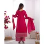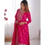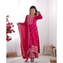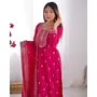 KURTA FABRIC: PURE CHINON SILK FABRIC WITH BEAUTIFUL EMBROIDERY SEQUENCE AND JARI WORK ON YOKE, SLEEVES, BOTTOM LACE WORK, ROUND NECKLINE, DUPATTA WORK:2.2 MTR PURE CHINON SILK FABRIC WITH EMBROIDERY SEQUENCE AND JARI WORK, BOADER FANCY LACE WORK, KURTA LENGTH:46 INCH APPORX, PENT: HEAVY PURE CHINNON SILK FABRIC, FREE SIZE FULLY STTICHED, SIZE: S(36) M(38) L(40) XL(42) And XXL(44) Fully stitched ready to wear.