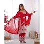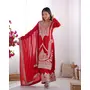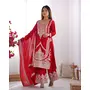 KURTA FABRIC: PURE VICHITRA SILK FABRIC WITH BEAUTIFUL EMBROIDERY SEQUENCE AND DORI WORK ON YOKE, SLEEVES, BOTTOM LACE PATTA WORK, DUPATTA WORK:2.2 MTR PURE VICHITRA SILK FABRIC WITH EMBROIDERY SEQUENCE AND DORI WORK BOADER FANCY LACE WORK, KURTA LENGTH:42 43 INCH APPORX, PENT: HEAVY PURE VICHITRA SILK FABRIC WITH FANCY EMBROIDERY SEQUENCE AND DORI WORK, FREE SIZE FULLY STTICHED, SIZE:M(38) L(40) XL(42) And XXL(44) Fully stitched ready to wear.