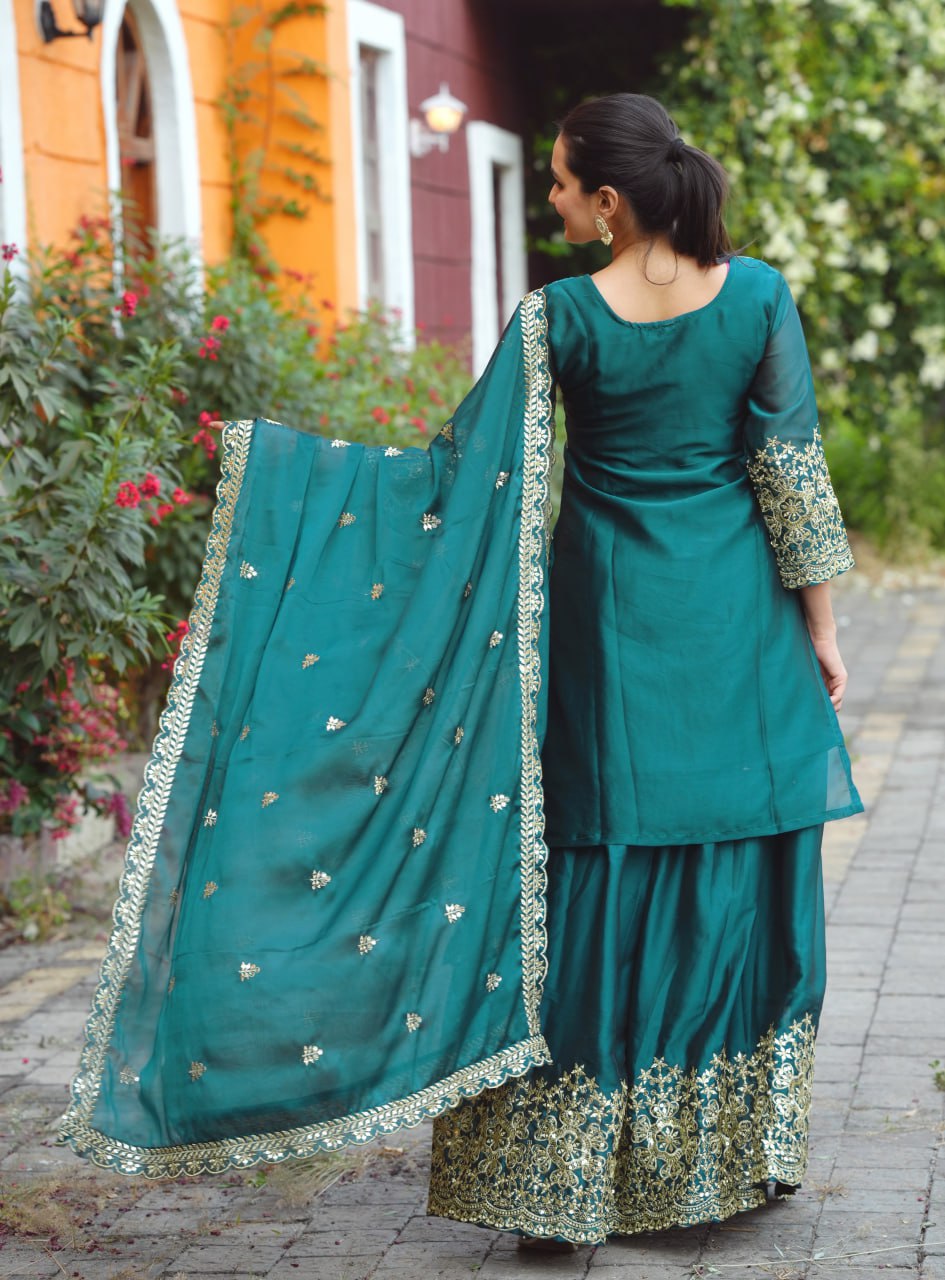 Top, Fabric : Rangoli, Inner : Micro, Work :Sequence Embroidery Work, Top length : 37 inch, Stich : S(36), M(38), L(40), XL(42), XXL(44), Lehenga, Fabric: Rangoli With Embroidery Work, Inner : Micro, Stich :- Full Stich With Elastic, Bottom Length: 40 inch, Dupata, Fabric : Rangoli, Work. : Sequence Embroidery Work, Length : 2.2 meter.