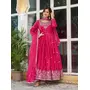 Gown, Fabric : American Silk, Inner : Micro, Work. : Thred with Sequnce work, Stich. : M(38), XL(42), XXL(44), With 3XL margin, Front and Back Both size work, Pent, Fabric : Micro, Work. : Plain, Stich : Full stich upto 44 with elastic, Dupata, Fabric : American Silk, Work : Thred with Thred work, Length : 2.2 meter.