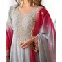 Designer Ethnic Suit Set with Dupatta Chinon Silk Fabric Codeing Dori With Sequnce With Rivet Moti for Women – Grey Color