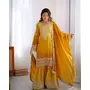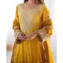 Designer Ethnic Suit Set with Dupatta Chinon Silk Fabric Codeing Dori With Sequnce With Rivet Moti for Women – Yellow Color