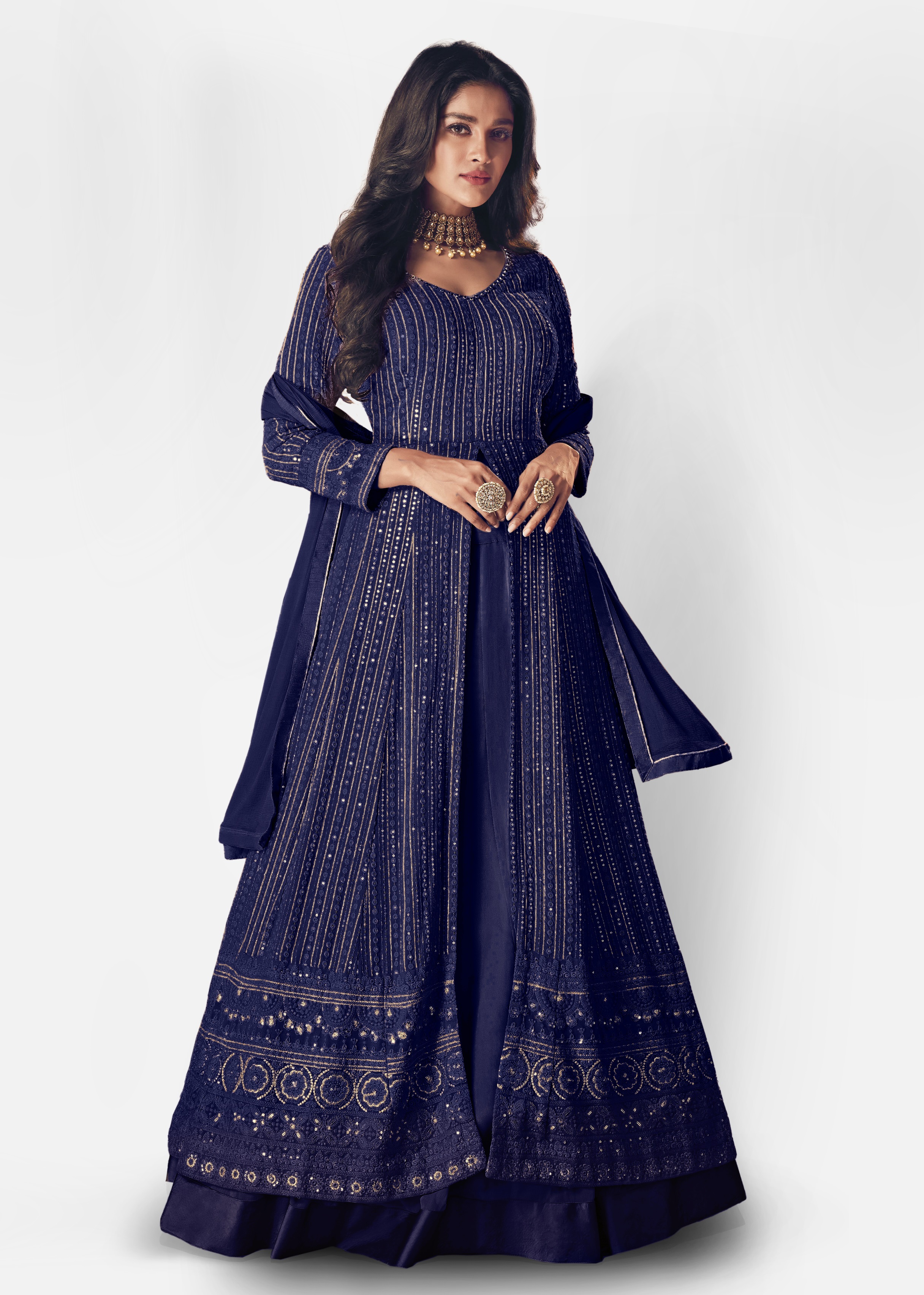 Designer Ethnic Suit Set with Dupatta Faux Georgette Fabric Thread And Sequins Embroidered Work for Women – Blue Color