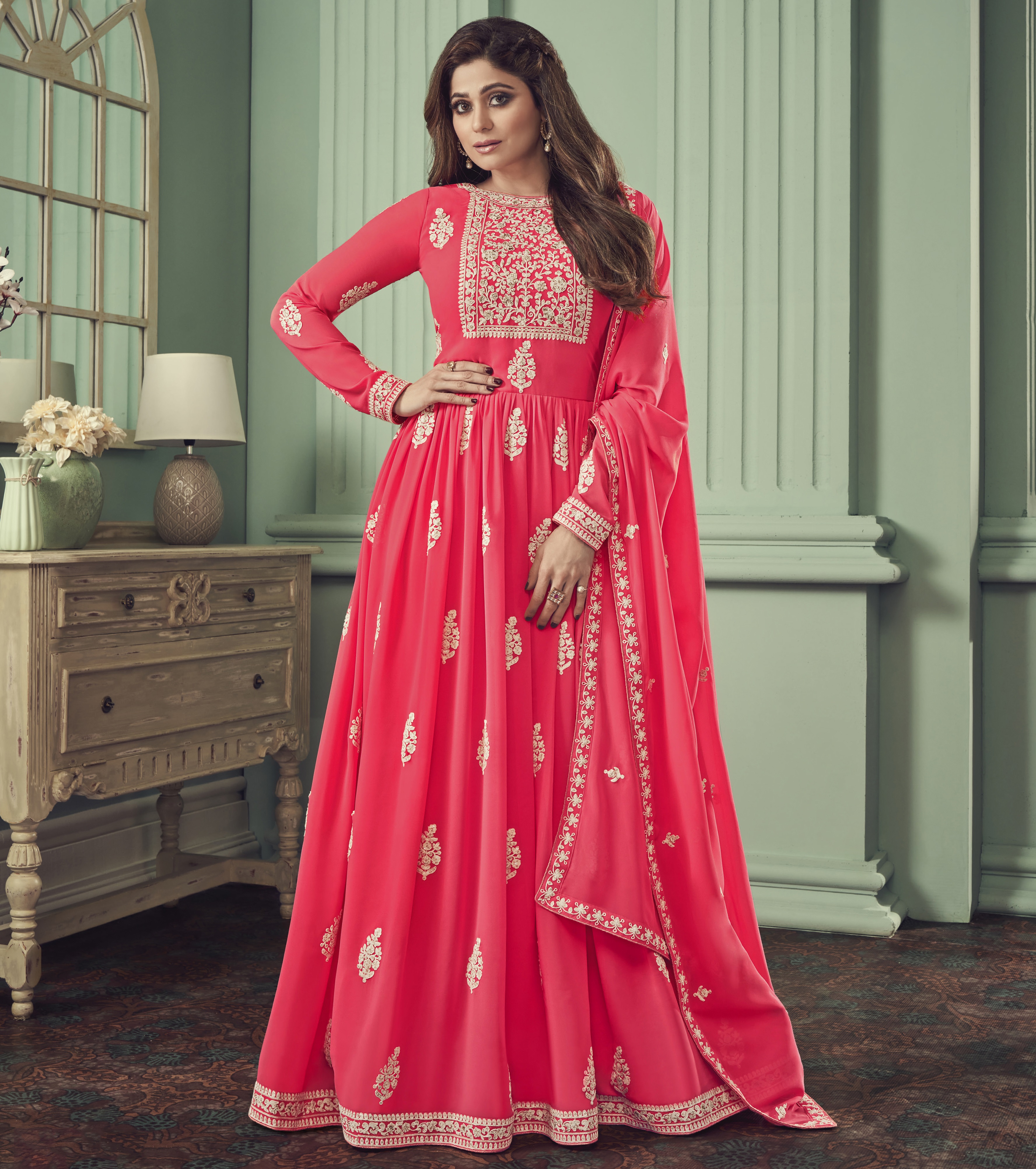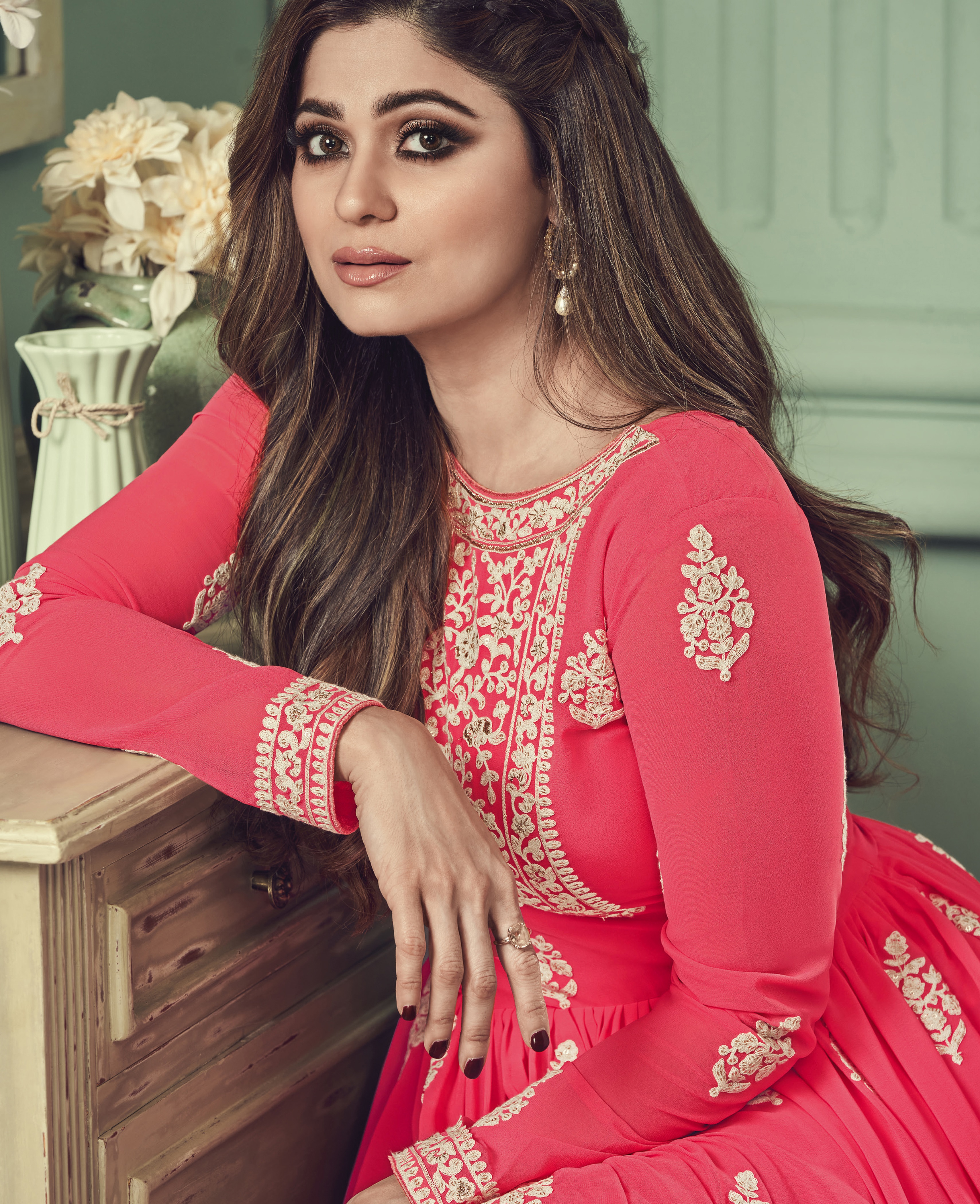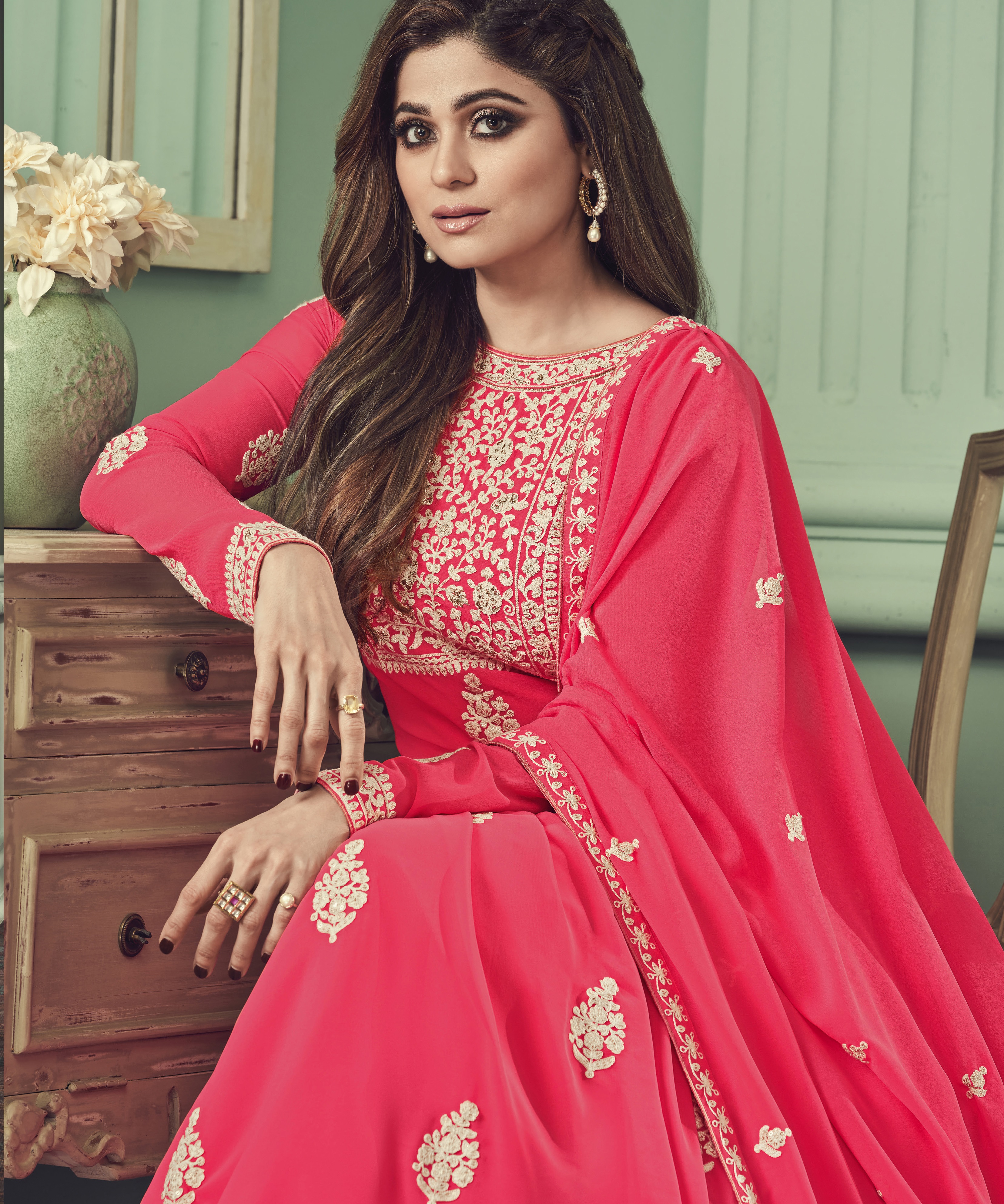 Designer Ethnic Suit Set with Dupatta Faux Georgette Fabric Thread And Sequins Embroidered Work for Women – Pink Color