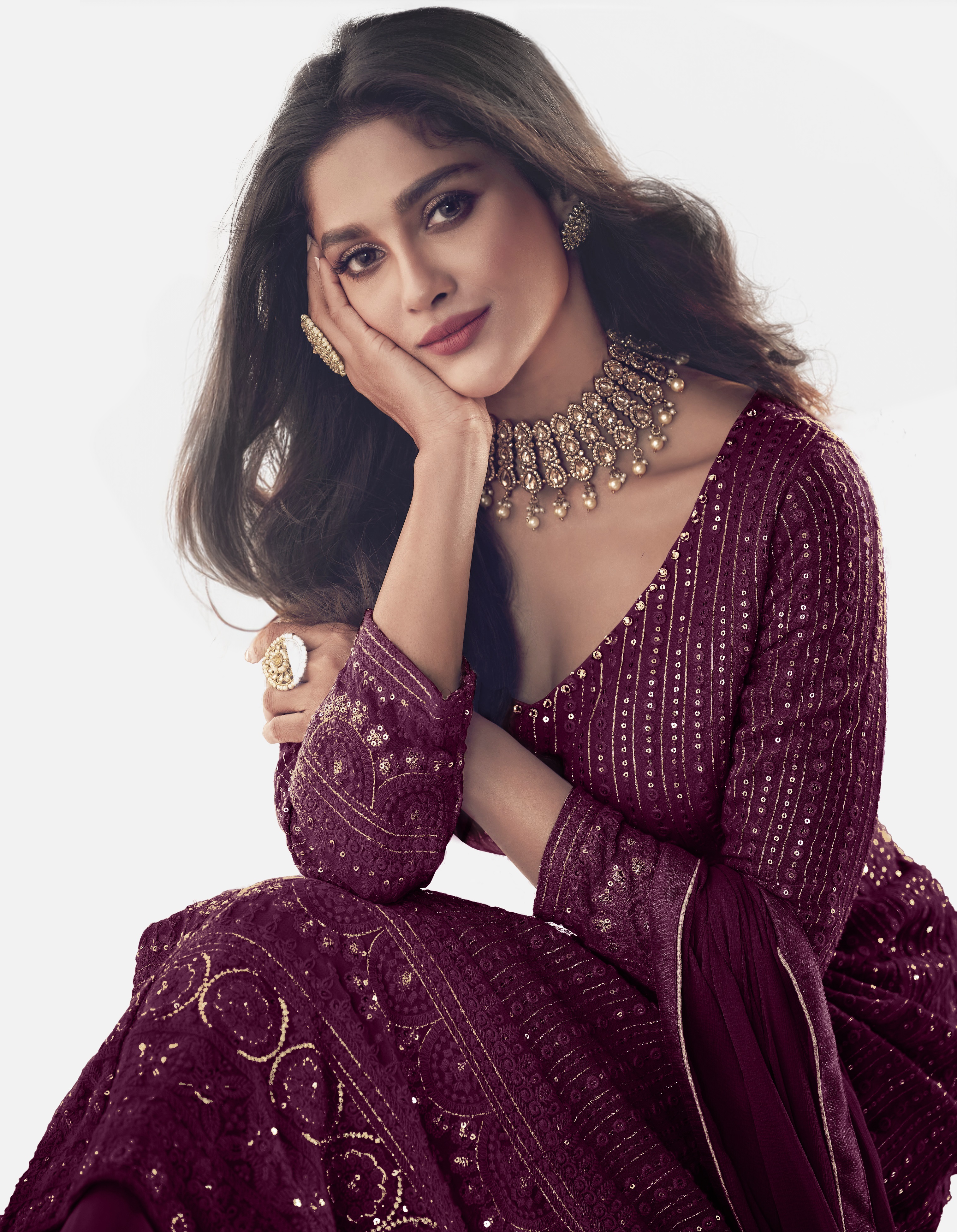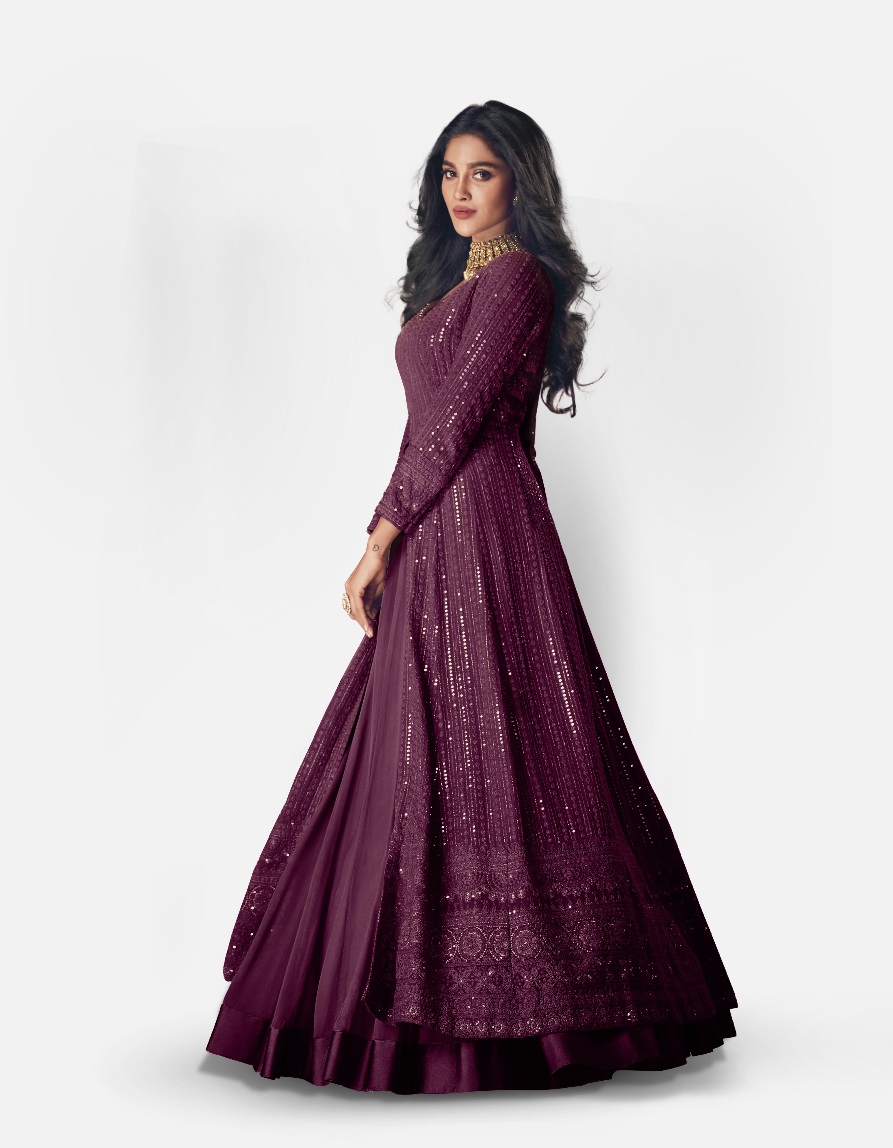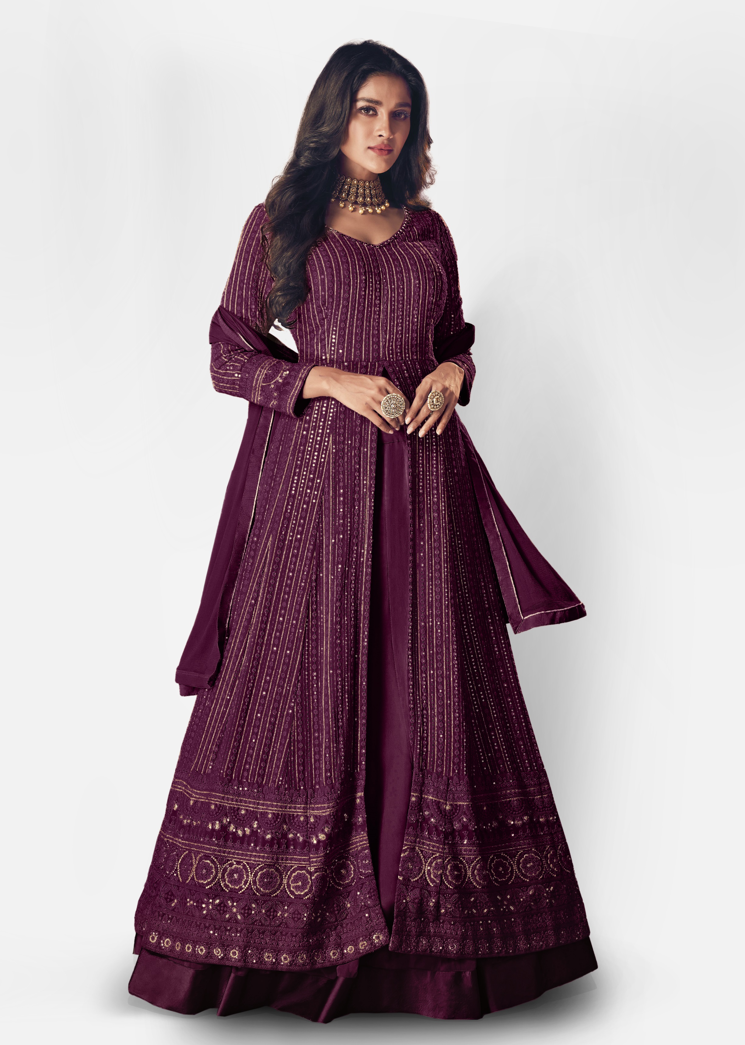 Designer Ethnic Suit Set with Dupatta Faux Georgette Fabric Thread And Sequins Embroidered Work for Women – Purple Color
