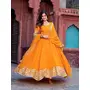 Gown, Fabric : Faux Georgette, Inner : Micro, Work. : Thred with Sequnce work, Stich. : M(38), XL(42), XXL(44)With 3XL margin, Front and Back Both size work, Pent, Fabric : Micro, Work. : Plain, Stich : Full stich upto 44 with elastic, Dupata, Fabric : Faux Georgette, Work : Thred with Thred work, Length : 2.2 meter.