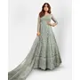 Designer Ethnic Suit Set with Dupatta Net Fabric Dori And Sequins Embroidered Wrok for Women – Grey Color