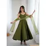 ANARKALI FABRIC: HEAVY PURE ROMANSILK CHANDERI FABRICYOKE FANCY LACE WORK, SLEEVES FABRIC ATTACHED INSIDE, PADDED, SIDE ZIPPER, GOWN FLAIR:4mtr plus fully flair ANARKALI INNER: PURE MICROSCRAPE FULL LINING DUPPTA FABRIC: SOFT NYLON NET DUPPTA WITH BOADER FANCY MIRROR LACE DUPPATA FABRIC 2.20 CUTANARKALI LENGTH:48 inch approxPENT FABRIC:PURE ROMANSILK CHANDERI FABRIC FREE SIZE FULLY STTICHED WITH ONE SIDE POCKETSIZE :XS(34) S(36) M(38) L(40) XL(42) And XXL(44) Fully stitched ready to wear.