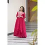 GOWN :- FABRIC WORK :- Star Georgette with Embroidery Beads Sequins-work SIZE : - M(38), L(40), XL(42), XXL(44) LENGTH :- 56 INCH FLAIR :- 3.5 MTR LINING :- Cotton (Full Inner Top To Bottom) SLEEVES :- Full sleeves STITCHING TYPE:- Standard Stitching with Double Flair NECK TYPE :- Designer V Neck.