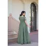 Gown :- Fabrics :- Silver Crunchy Fabric Size :- M(38), L(40), XL(42), XXL(44) Length :- 56 Inch Sleeve:- Sleeveless Flair :- 3.5 MTR Neck :- Fancy Round Neck as Shown in Image. Lining (Inner) :- Cotton Stitching Type :- Stitch With Canvas Patta Koti Fabric:- Silver Crunchy Fabric with Embroidery work Length :- 15 Sleeve:- Short sleeves Stitching Type :- Stitching With padded.