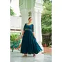 GOWN :- FABRIC WORK:- Faux Blooming with Beads embroidery-work SIZE:- M(38), L(40), XL(42), XXL(44) LENGTH:- 56 INCH FLAIR:- 12 MTR LINING:- Cotton (Full Inner Top To Bottom) SLEEVE:- Half Sleeves NECK TYPE:- Round Neck.