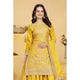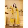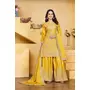 Top Fabric : Natural Crep Inner : MicroWork : Sequence Embroidery WorkTop length : 38 inchStich : S(36), M(38), L(40), XL(42), XXL(44) sharara Fabric: Natural Crep With Sequence Embroidery WorkInner : MicroStich :- Full Stich With ElasticBottom Length: 40 inch Dupata Fabric : Natural Crep With Sequence Embroidery WorkLength : 2.2 meter.