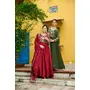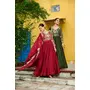 GOWN :- FABRICS WORK :- Vichitra Fabrics With Multi Thread Zari Embroidered work SIZE :- M(38), L (40), XL(42), XXL(44) LENGTH :- 55 INCH FLAIR :- 4.2 MTR LINING :- Cotton (Full Inner Top To Bottom) SLEEVES :- Full Sleeves NECK TYPE :- PAN (V Neck) STITCHING TYPE :- 12 Kali Stitch with Canvas PattaDUPATTA :- FABRICS WORK :- Vichitra fabric with Zari Embroidered work LENGTH :- 2.3 MTR.