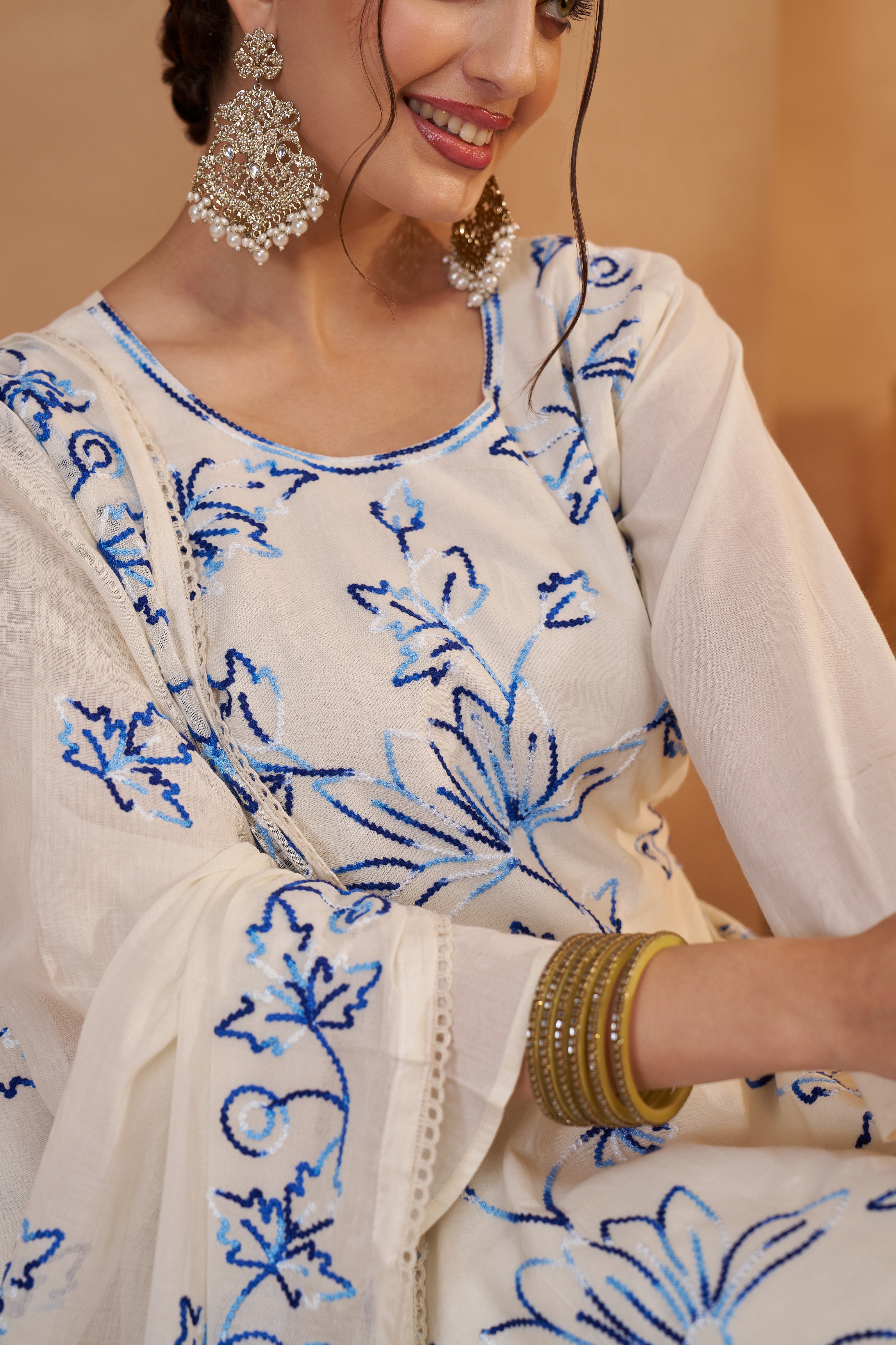 Suit Fabric :- Bombay Cotton Suit Colour :- Off WhiteSuit Size :- 46 InchSuit Height :- 46 InchDupatta Fabric :- Bombay CottonDupatta Size :- 2.25 meterBottom Fabric :- Bombay Cotton Bottom Size :- 2.50 meterWork Description :- Thread work Embroidery with Readymade Fancy Lace.