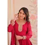 GOWN :- FABRIC WORK :- Faux Blooming Georgette with Zari Sequins Embroidered work SIZE :- M(38), L(40), XL(42), XXL(44) LENGTH:-56 INCH FLAIR :-3 MTR LINING :-Cotton (Full Inner Top To Bottom) SLEEVE :-Full Sleeves NECK TYPE :-Fancy Round Neck DUPATTA :- FABRICS WORK :- Faux Blooming With Rich Embroidery Sequence Work LENGTH :- 2.30 MTR.