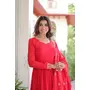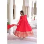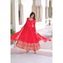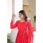 GOWN:- FABRICS WORK :- Vichitra Silk with Rich Sequins Embroidered work SIZE :- M (38), L (40), XL (42), XXL (44) LENGTH :- 56 INCH FLAIR :- 3 MTR LINING :- Cotton (Full Inner Top To Bottom) SLEEVES:- Full Sleeves NECK TYPE :- Fancy V Neck STITCHING TYPE:- Stitched with Canvas Patta DUPATTA:- FABRIC WORK:- Vichitra Silk with Sequins and Embroidered work and designer lace border. LENGTH :- 2.25 MTRBOTTOM:- FABRIC:- Vichitra Silk with Rich Sequins Embroidered work LENGTH:- 42 INCH WAIST:- Elastic waist (Customer Can Adjust Upto 32-44).