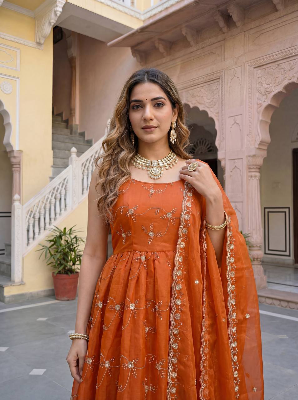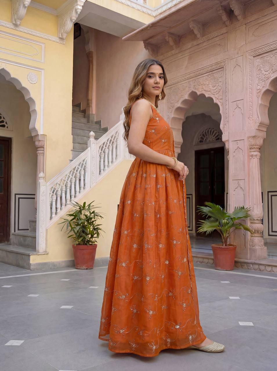 Gown: Fully stitched ready-to-wear gown for an elegant ethnic look