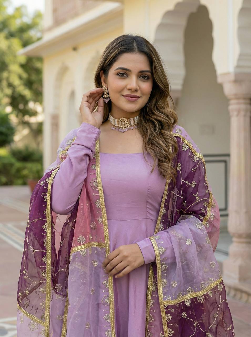 Elegance meets tradition a stunning purple paired with a beautifully embroidered multi-tone dupatta, perfect for festive celebrations or a graceful evening affair.