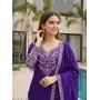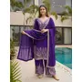 Elevate your festive style with these stunning embroidered sharara suits a perfect blend of grace, tradition, and modern charm. Whether its a wedding, festive gathering, or celebration, these rich hues of black, rani and purple are designed to make you shine.