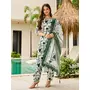 Green Color Silk Blend Fabric Ethnic Kurta Set With Designer Printed