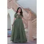 Green Color Silver Crunchy Fabric Designer Embroidered Gown With Koti
