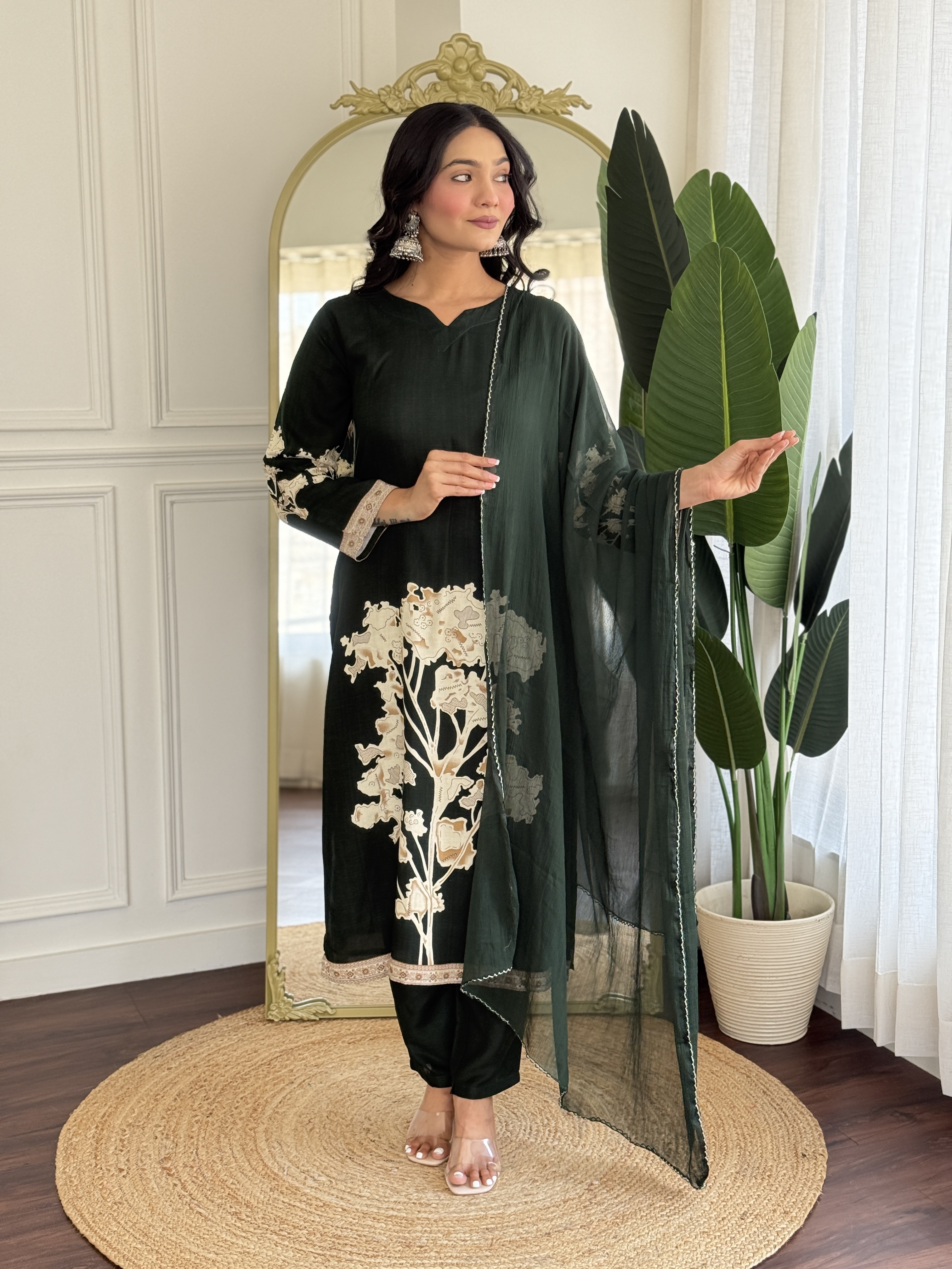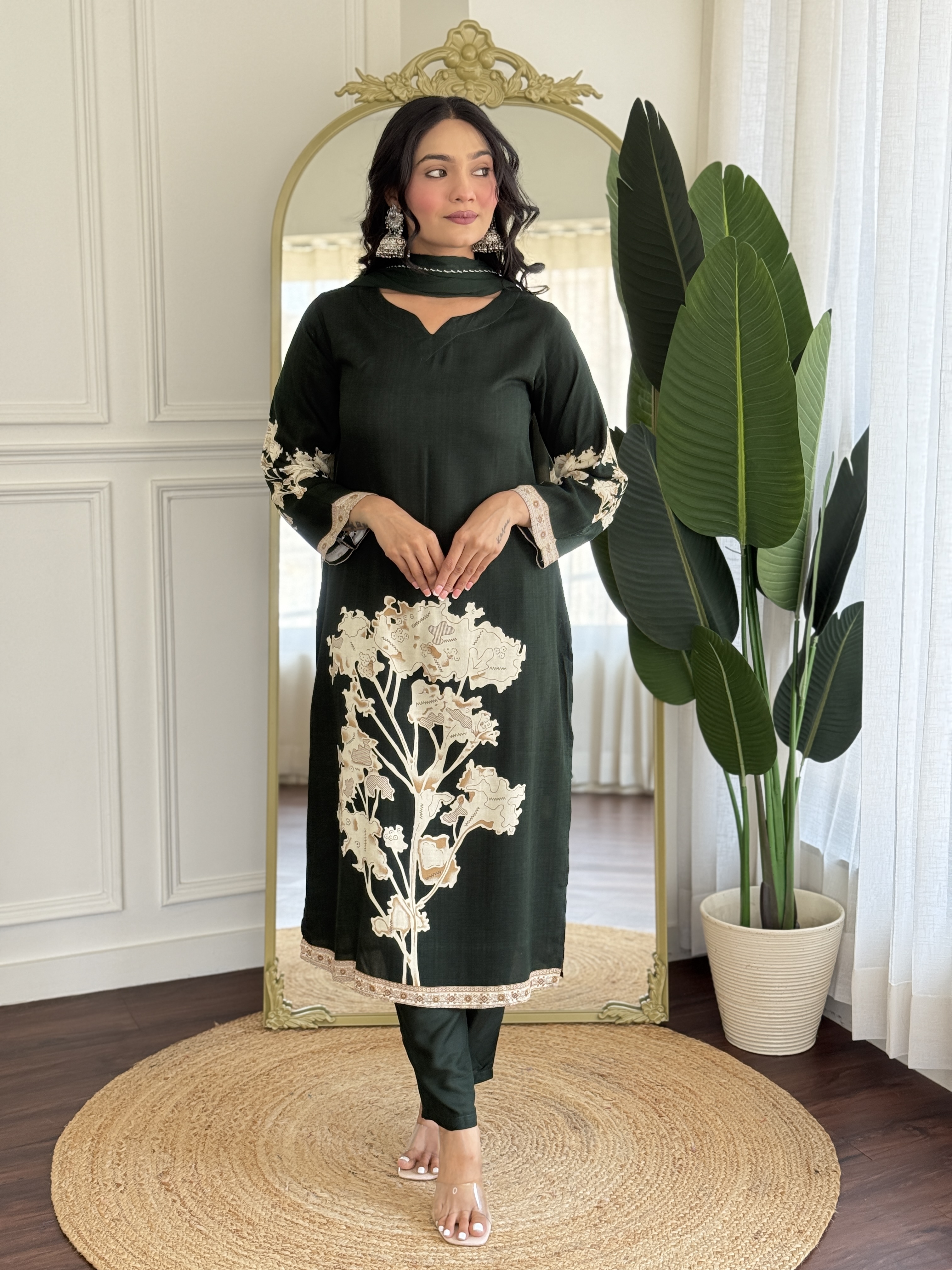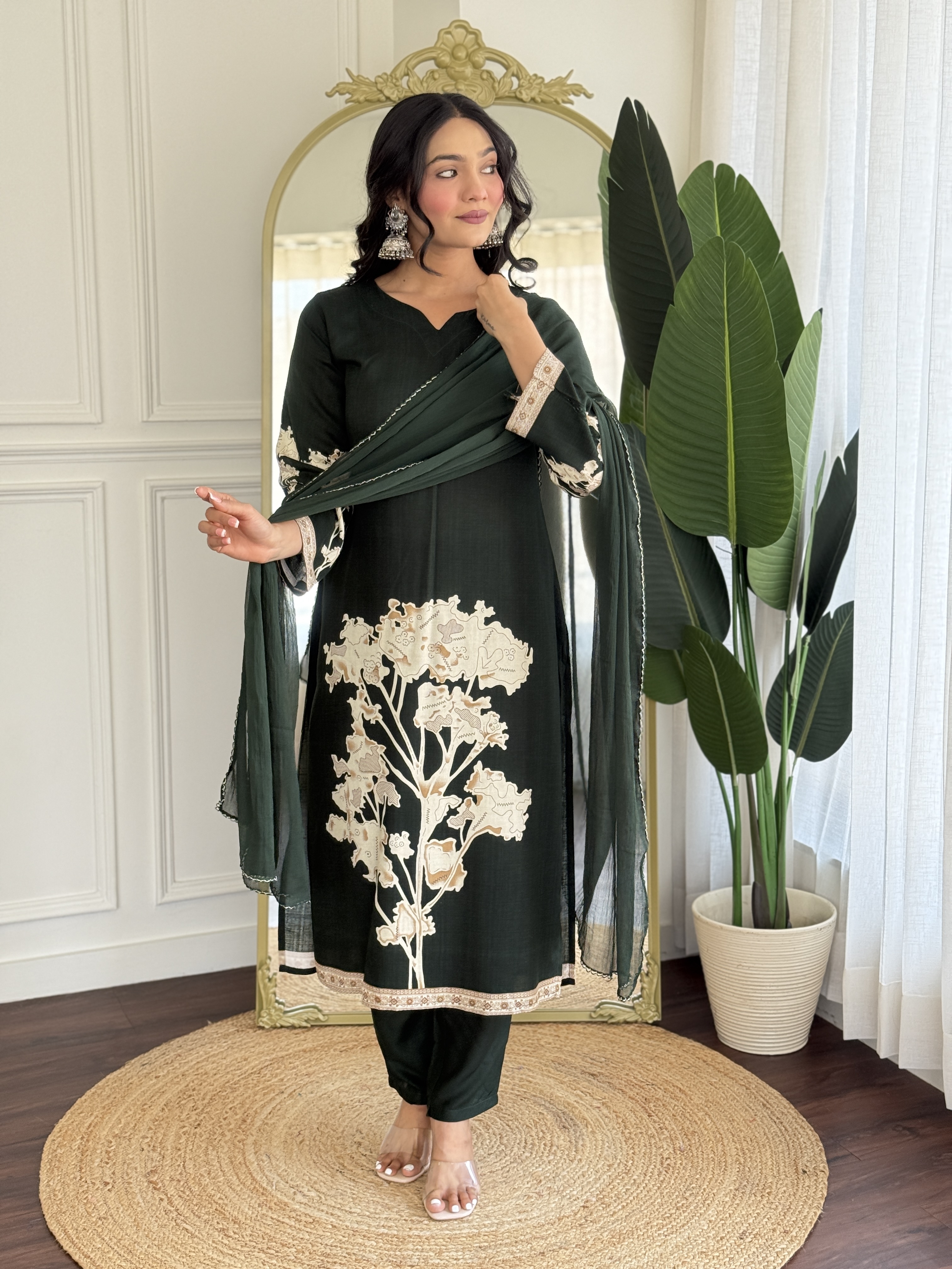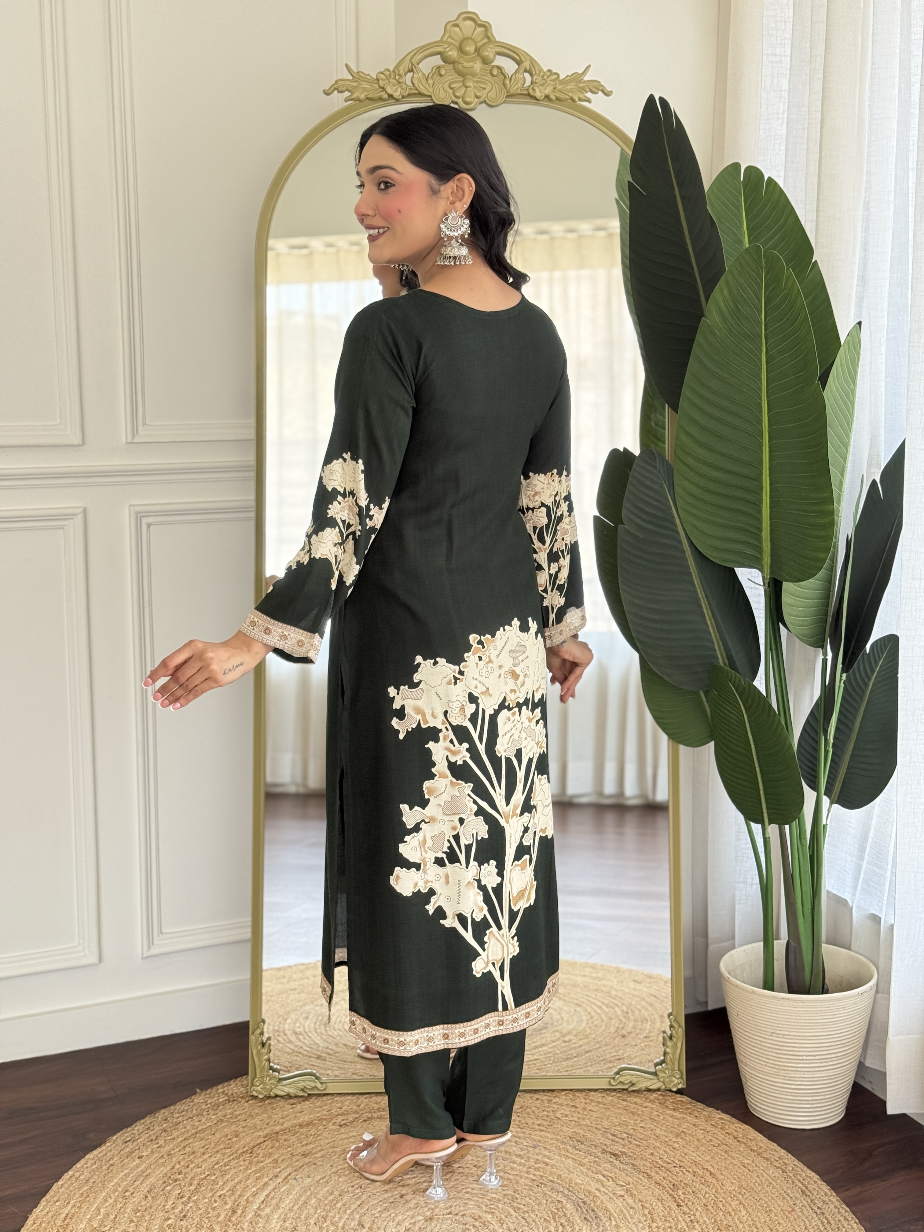 Green Color Smart And Ethnic Readymade Kurta Set For Casual And Formal Looks