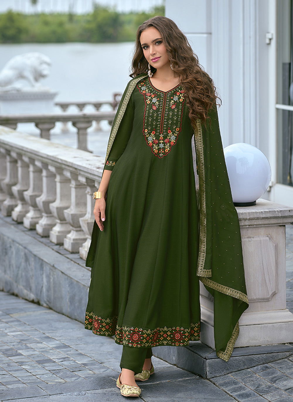 Green Color Vichitra Silk Fabric Stitched Salwar Kameez For Ceremonial Looks