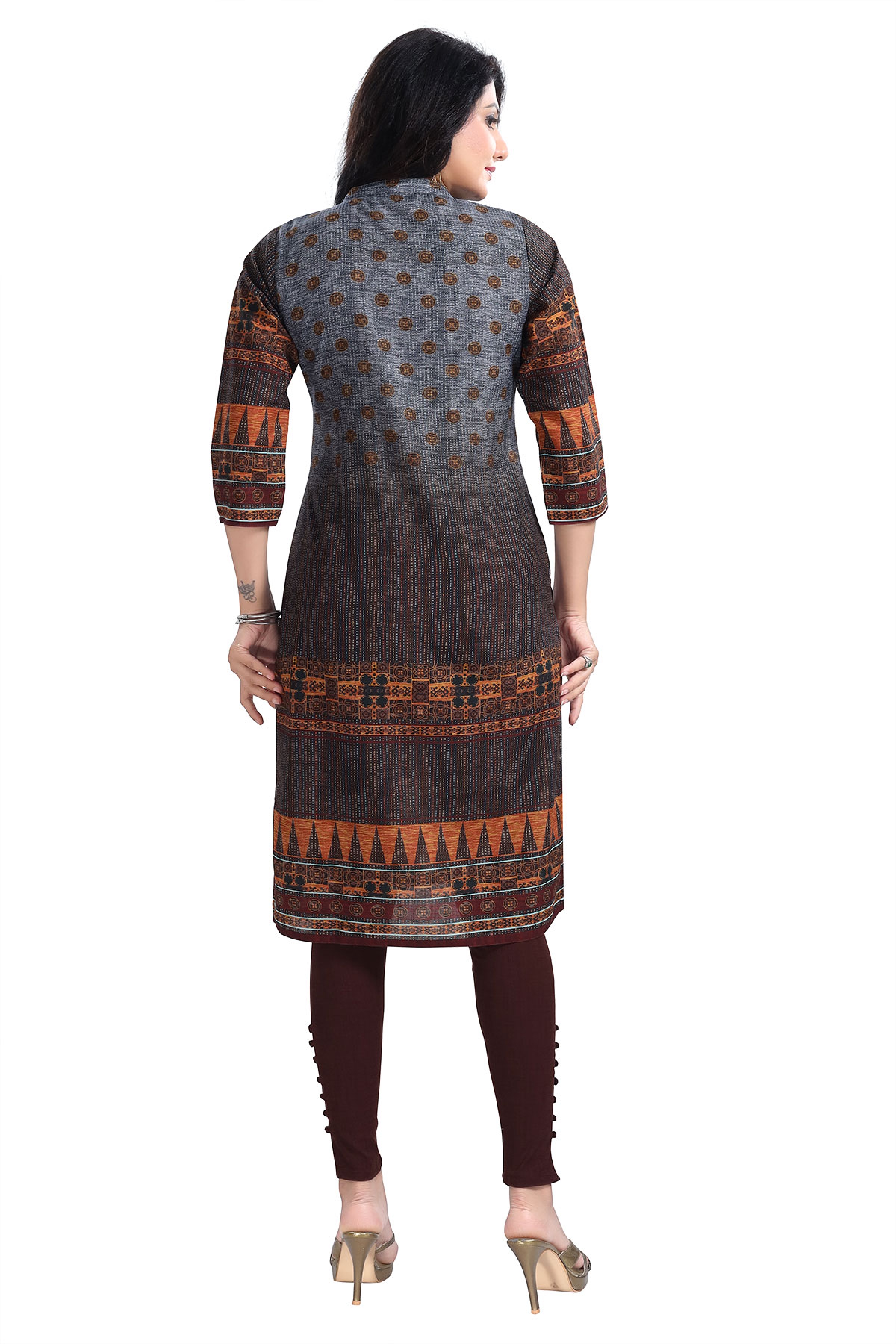 Grey Color Cotton Slub Fabric Designer Digital Printed Formal Kurta