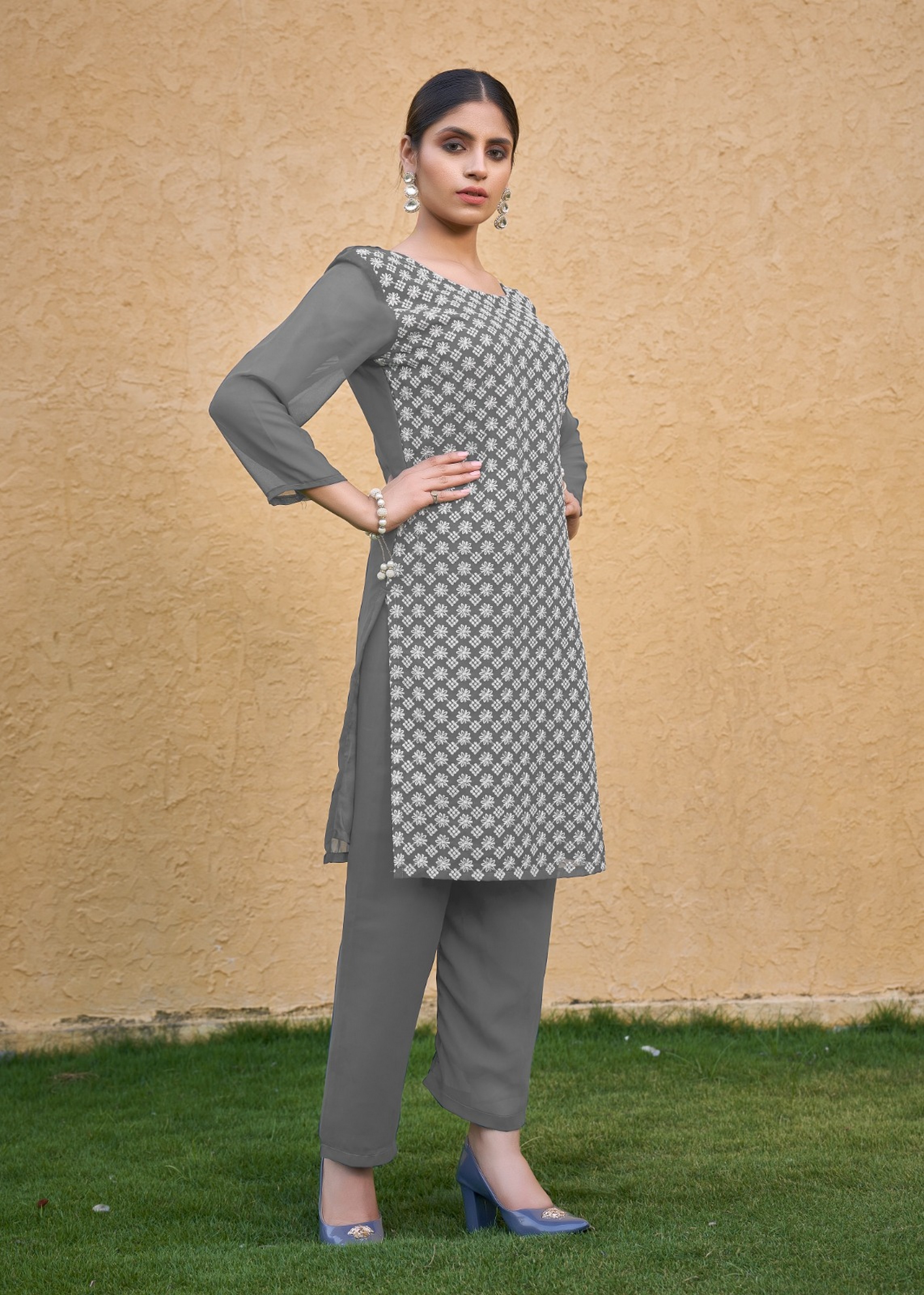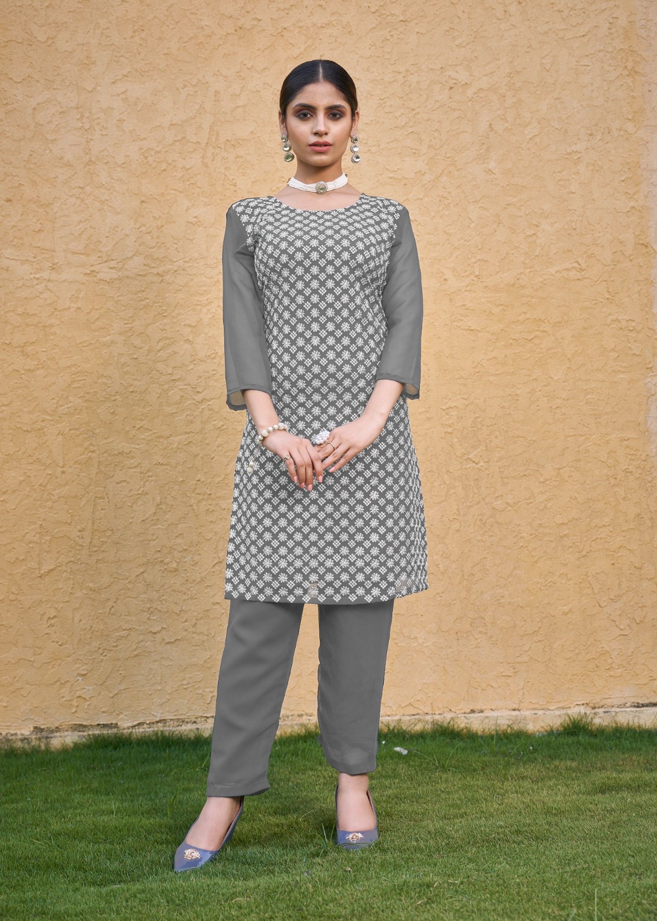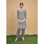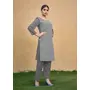 Grey Color Thread Embroidery Work Casual Georgette Kurti