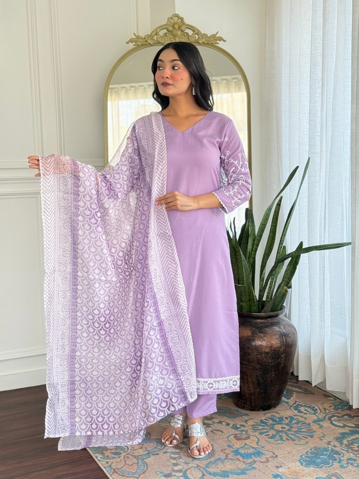 Lavender Color Smart And Festive Readymade Rayon Fabic Kurta Set