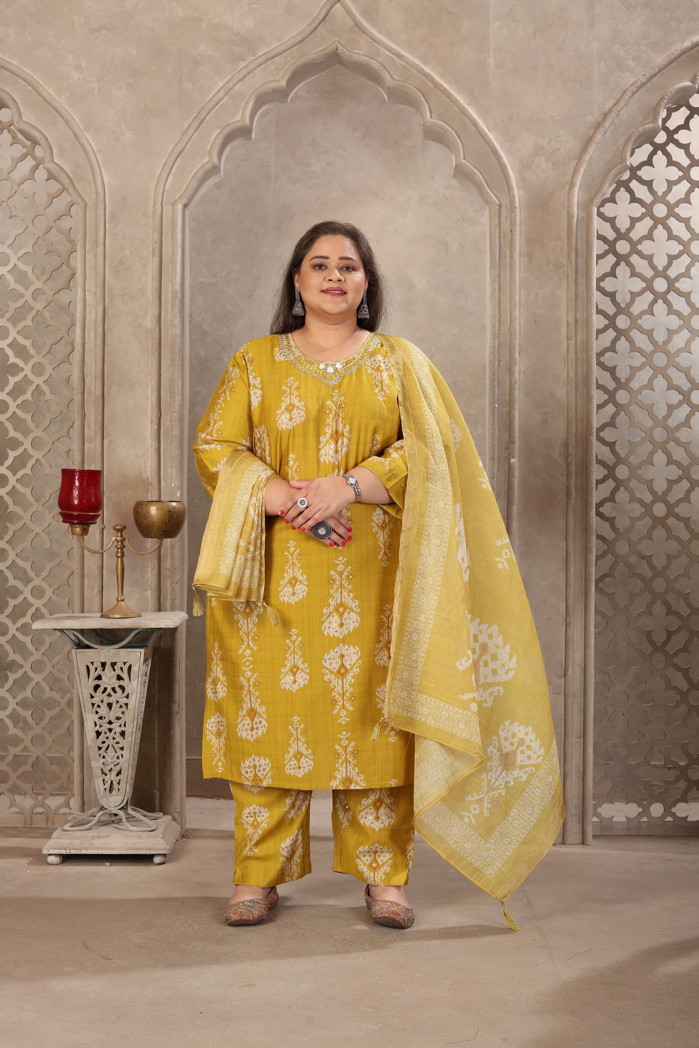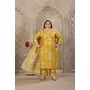 Lemon Color Lichi Viscose Fabric Prited Plus Size Kurta Set With Dupatta