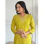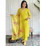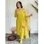 Lemon Color Rayon Slub Fabric Ceremonial Wear Embroidery Work With Printed Kurta Set