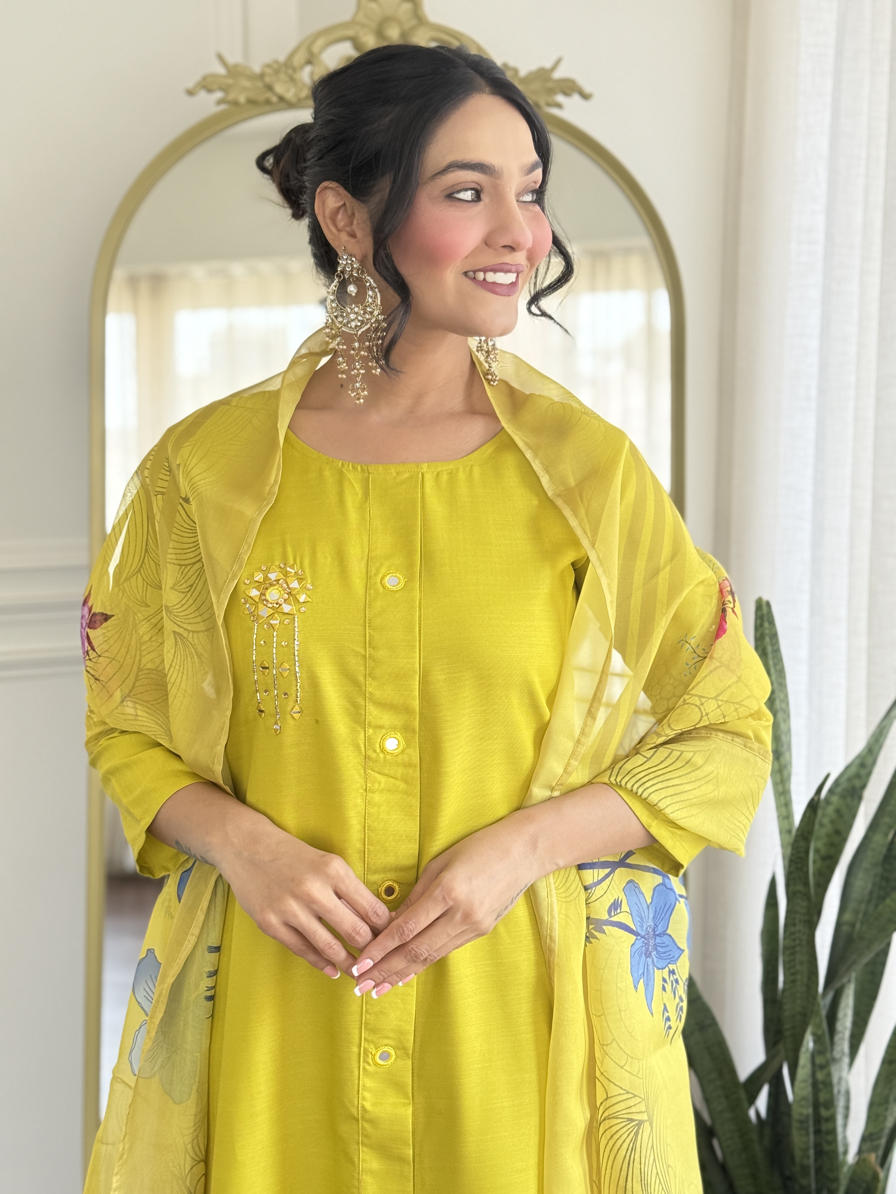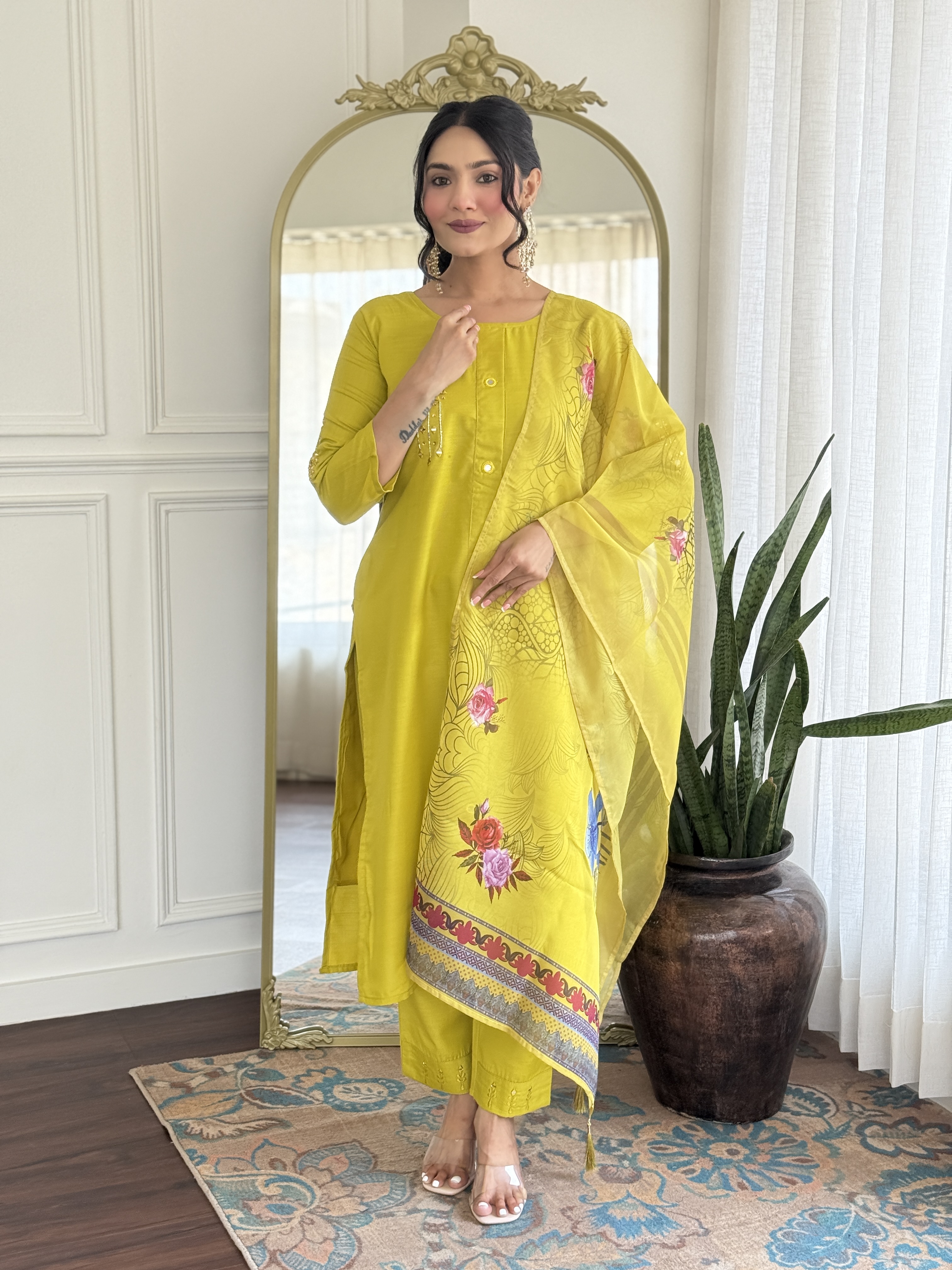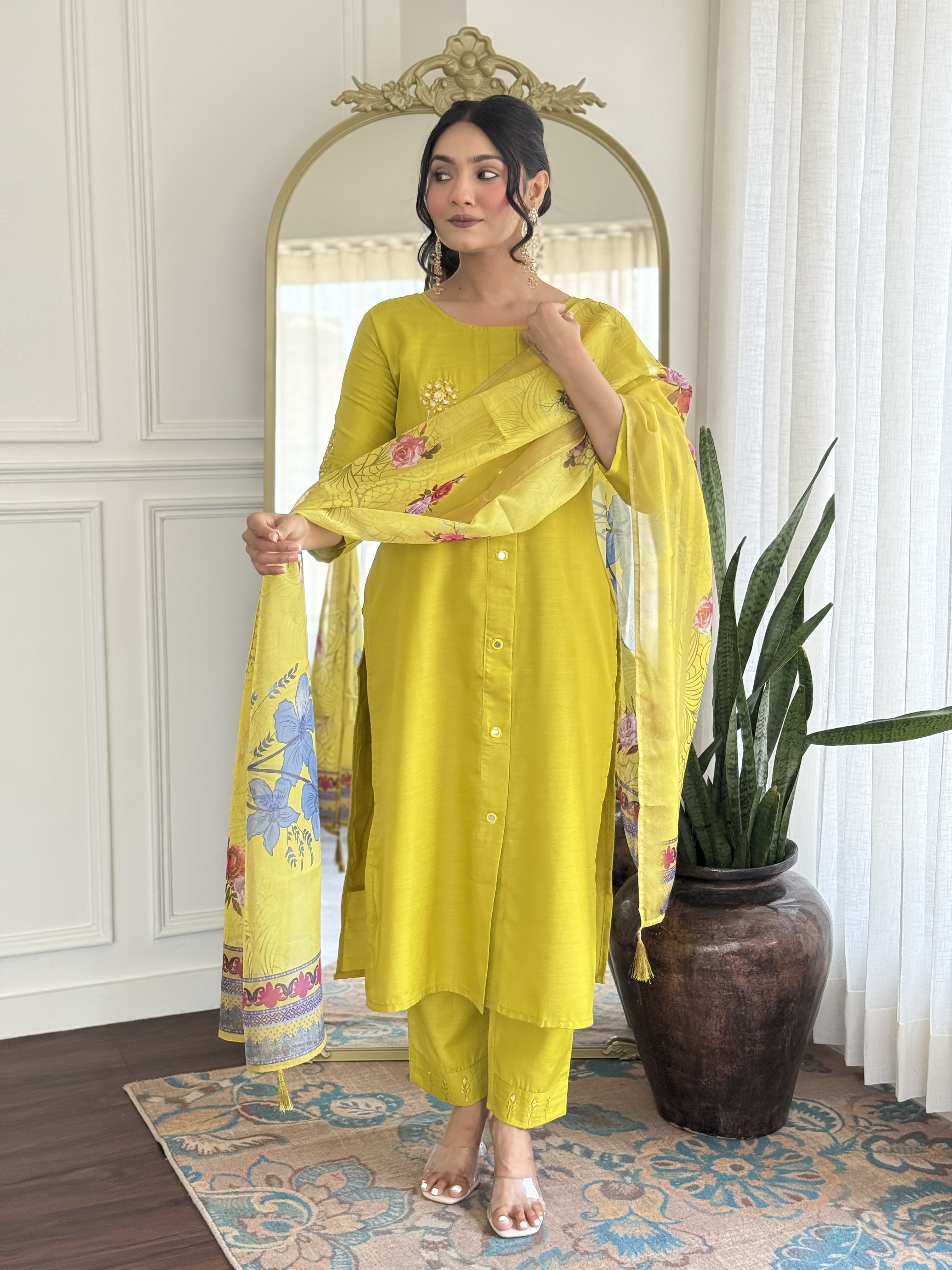 Lemon Color Smart And Ethnic Readymade Kurta Set For Casual And Formal Looks